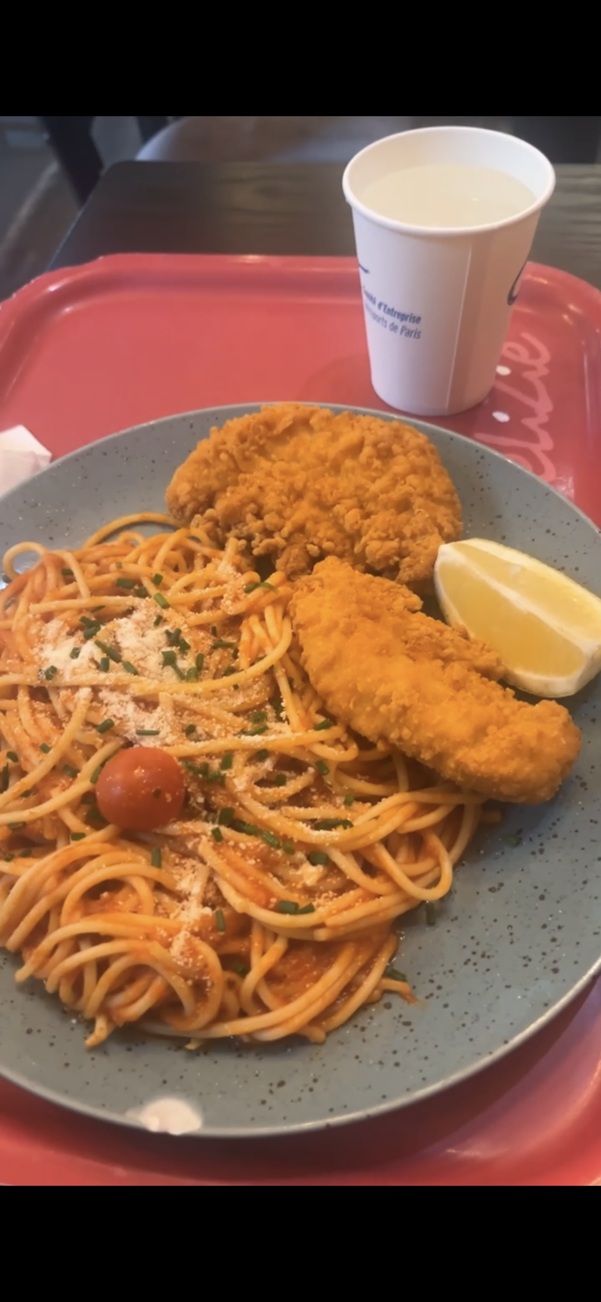 Nous avons opté, mon amie et moi, pour l'escalope milanaise avec des pâtes sauce tomate basilic et des copeaux de parmesan, tel que décrit sur la carte. La déception a été de taille lorsque nous avons reçu deux tenders industriels avec des spaghettis baignant dans une sauce tomate acide et sans saveur. Pour un coût de 13 €, je trouve cela tout simplement inacceptable. C'est malheureux de constater que cette expérience décevante n'est pas isolée, car à chaque visite, la réalité de l'assiette ne correspond pas à ce qui est annoncé. J'espère sincèrement que ces retours contribueront à une amélioration nécessaire. Il est également important de souligner que l'enseigne indique partout que les plats sont faits maison, ce qui accentue davantage notre déception.