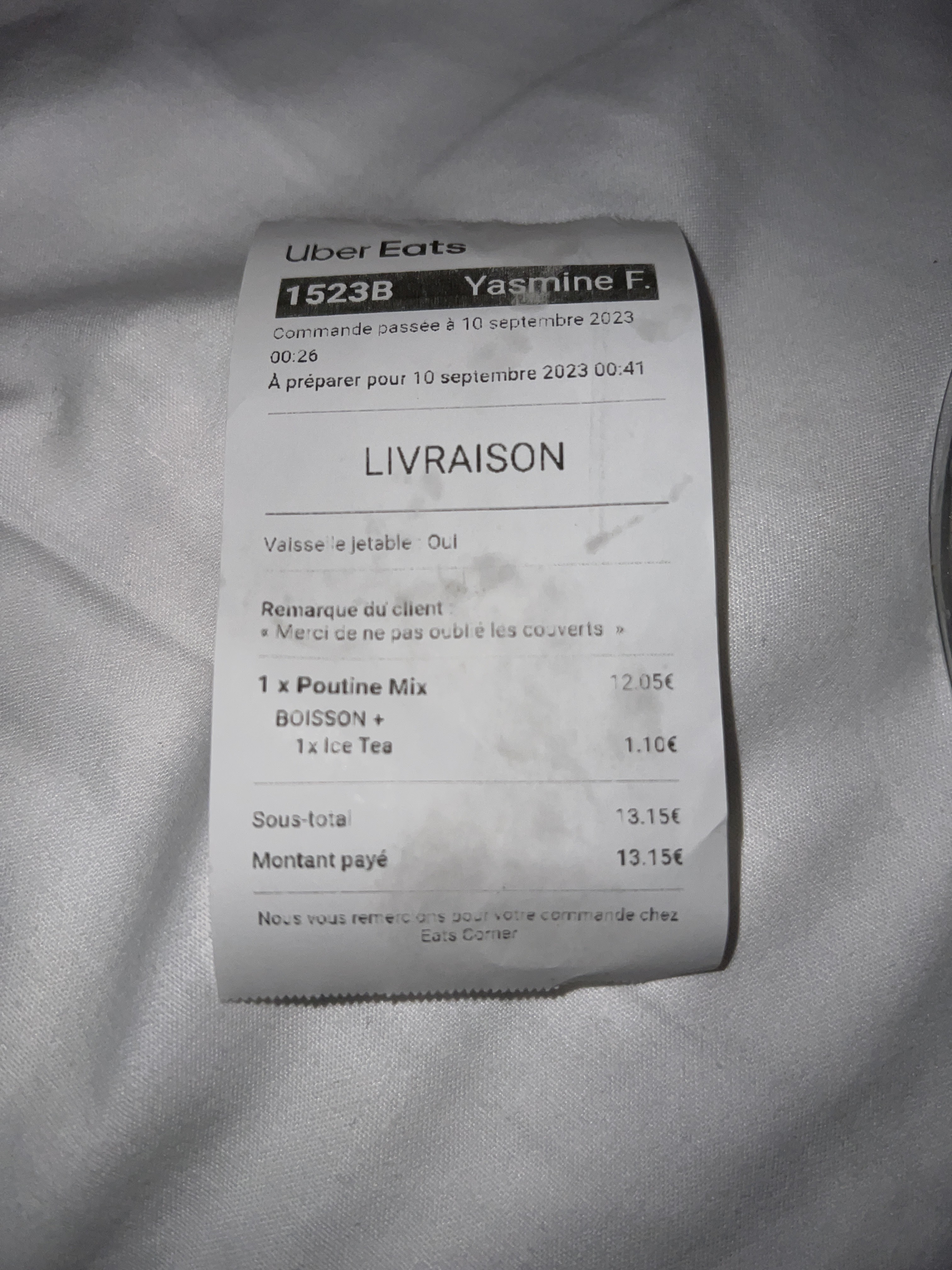 j’ai bien précisé « avec couvert » je me retrouve avec ma poutine sans pouvoir la manger car incapable de mettre ce que j’ai demandé. Franchement très déçu faut savoir lire quand on vous commande quelque chose sinon précise que vous n’avez pas de couvert. Manque de professionnalisme. Niveau goût franchement avant c’était bien meilleure.