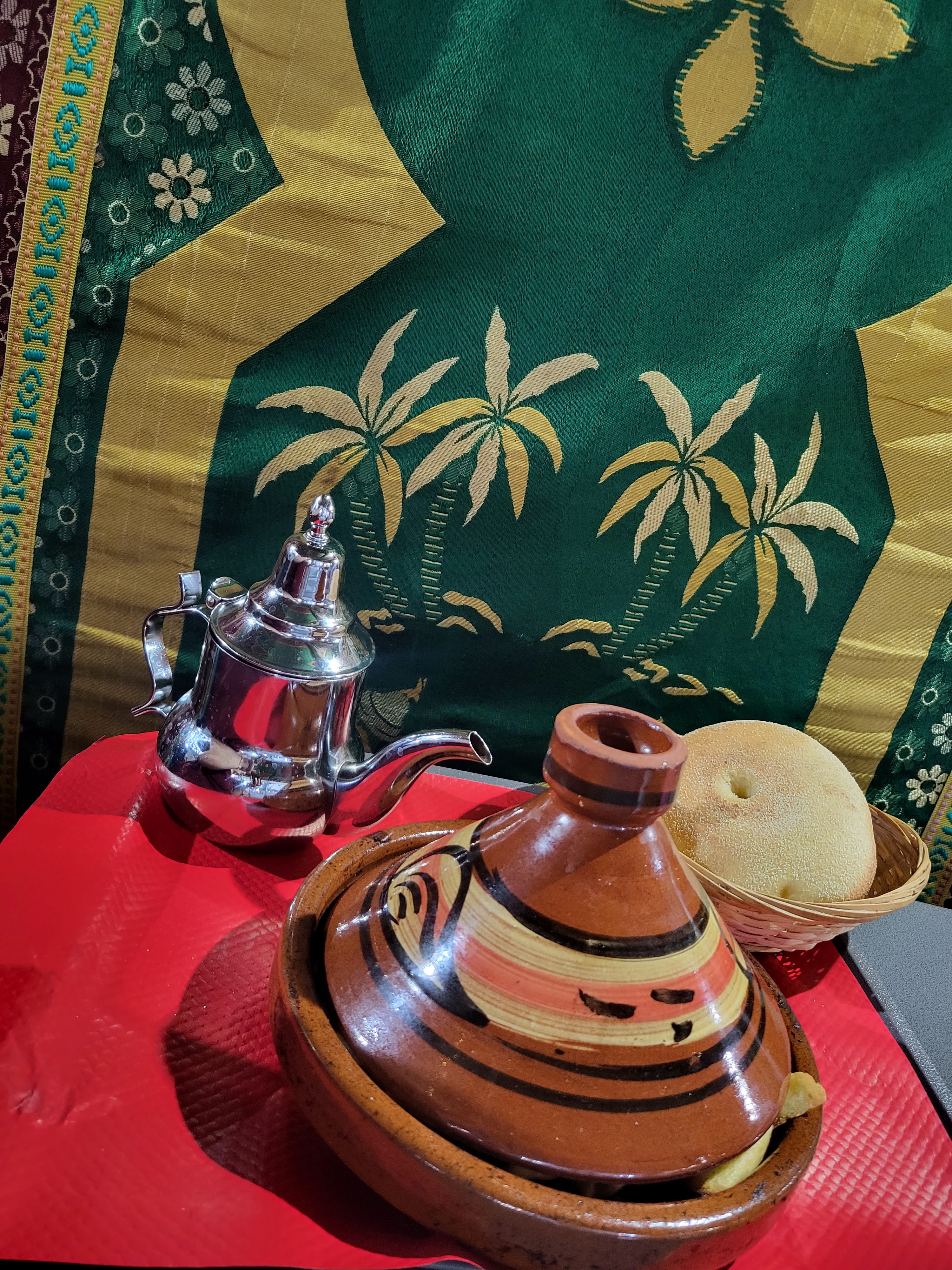 Un restau familial , terasse avec déco marocaine , le +++ chateau gonflable pour les enfants ... j'ai commandé un tajine poulet trop bon et surtt génereux , avec du bon thé et du pain fait maison ... merci pour ce petit voyage au Maroc Ps : le jeune a la caisse est trés aimable , serviable et a l'écoute