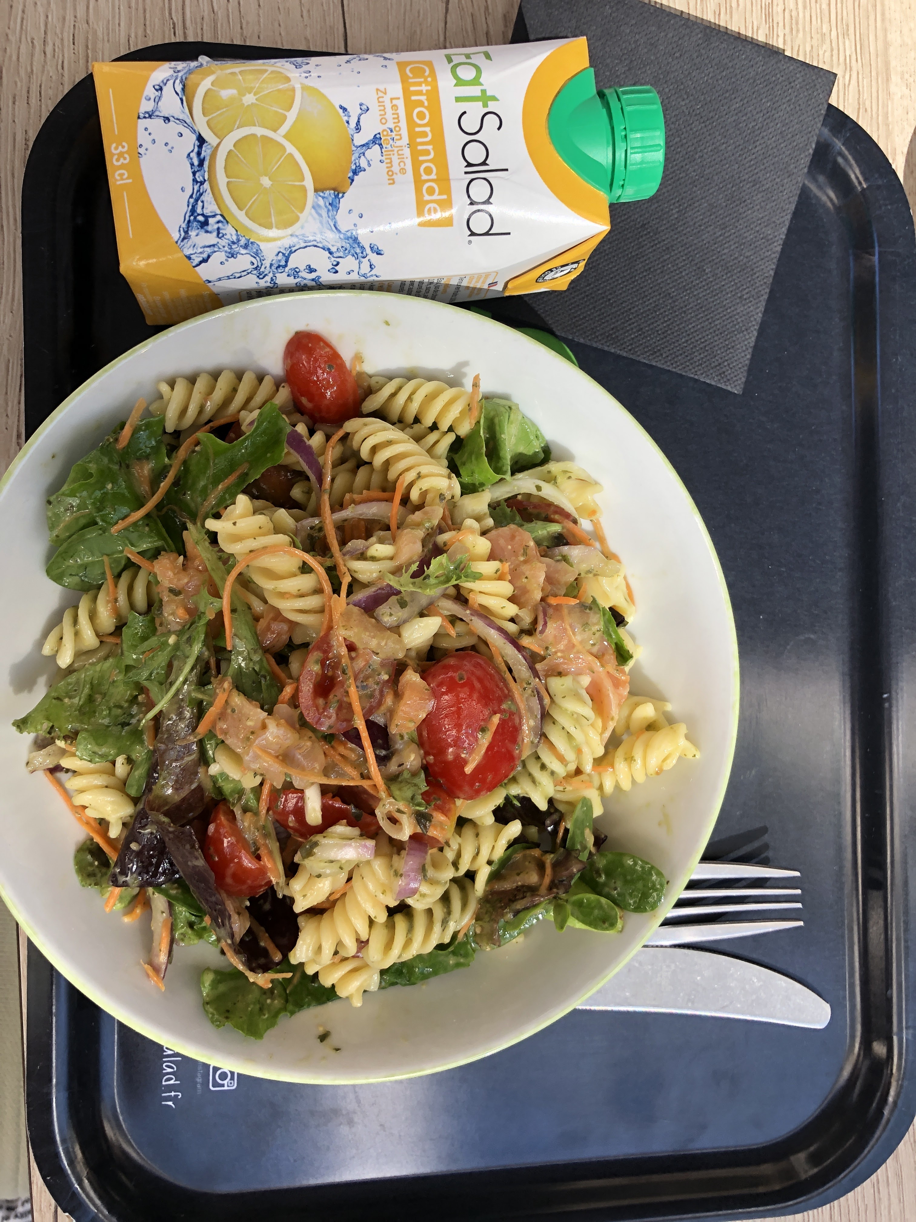 Un bar à salades façon Subway. Vous avez de la choix de la salade seule ou avec pâtes/riz/boulgour ou pâtes/riz seuls. Vous composez ensuite votre salade avec les ingrédients dispo. Propose une formule salade + boisson ou salade + dessert + boisson.