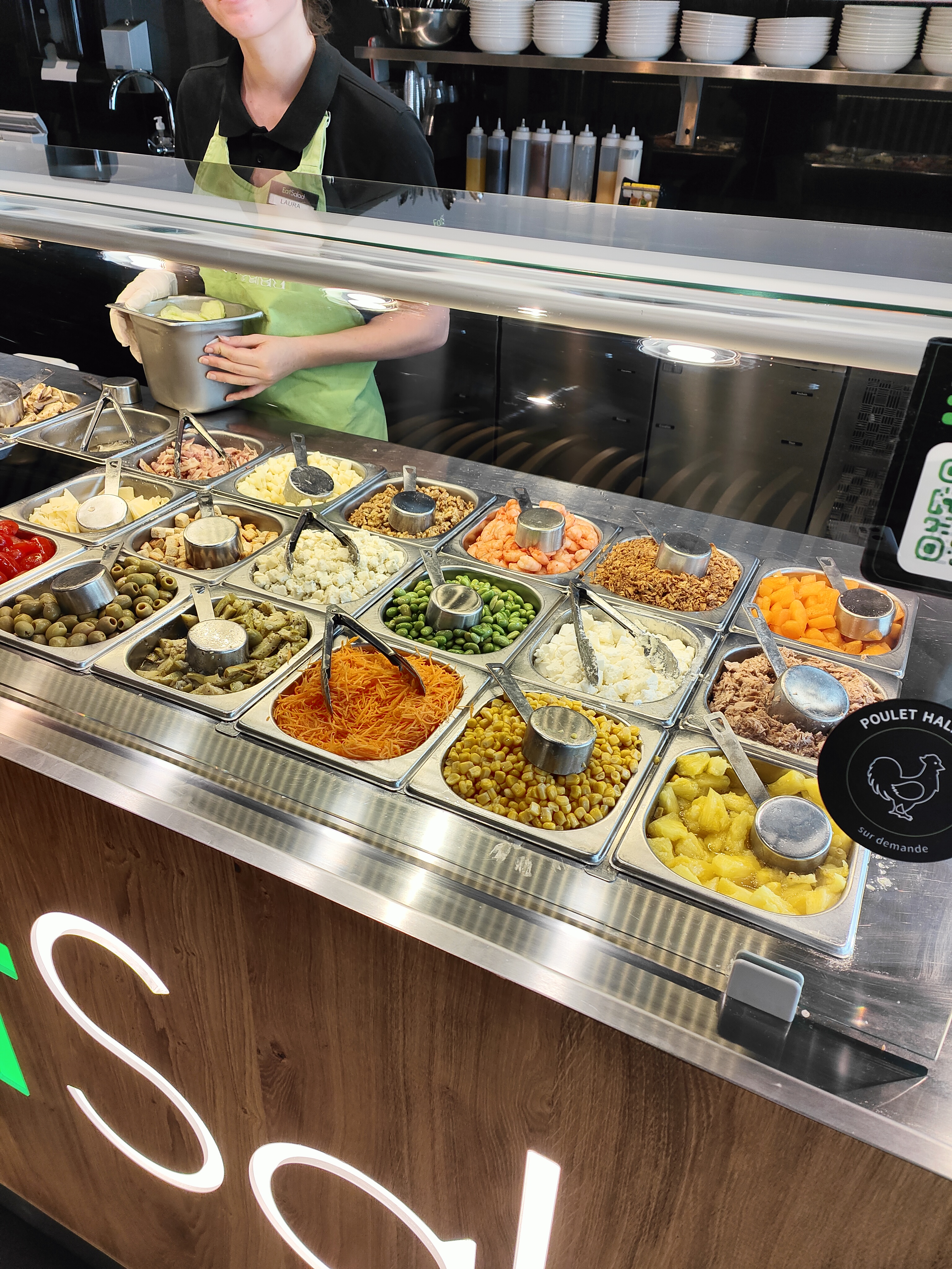Ingrédients nombreux et de bonne qualité. Personnel accueillant et agréable. Le concept est très sympa. Je me suis régalé !