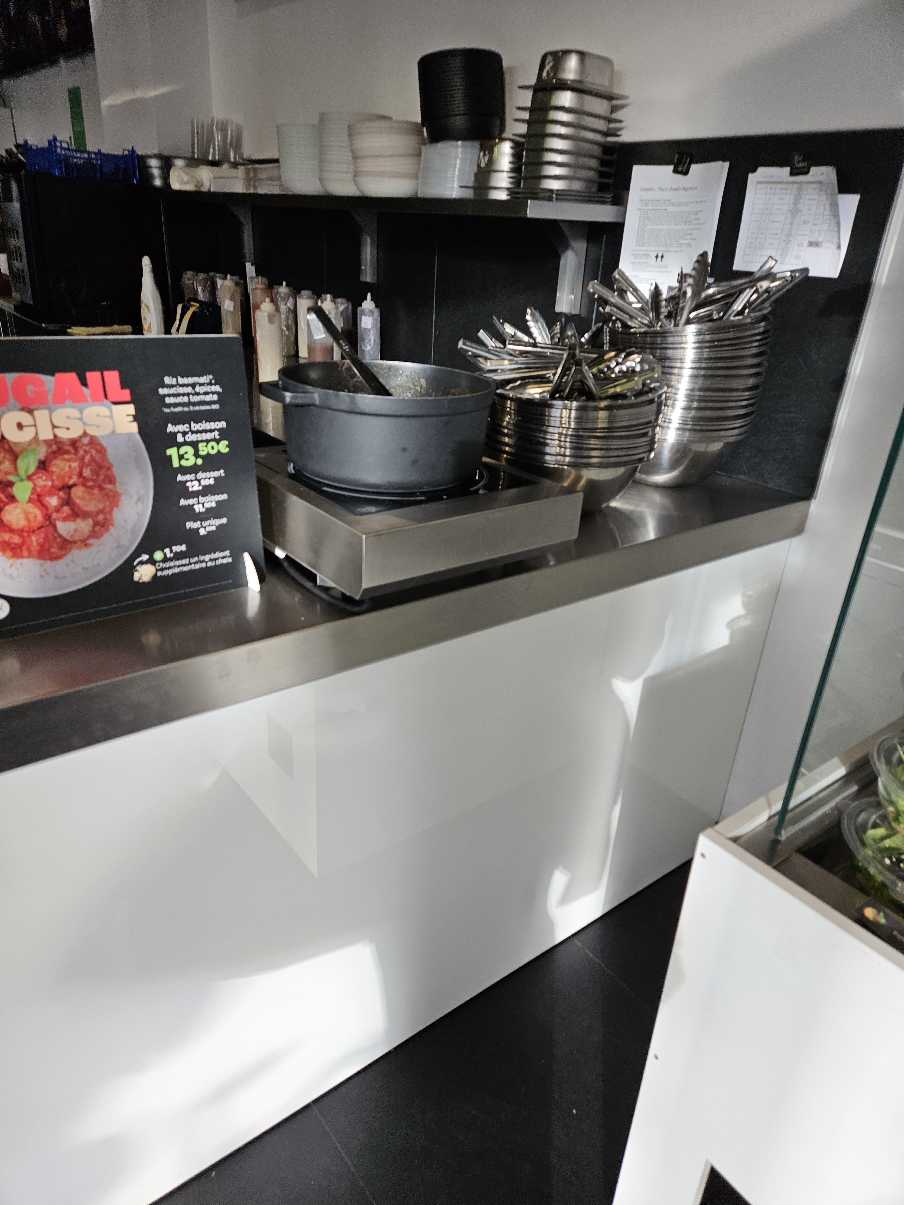 Mon amie et moi sommes à présent dans ce lieu Nous sommes rentrées 2 jeunes discutent entre eux ,vont ,va et viennent dans la cuisine je suppose ....mais sans nous voir , Le repas rougail... est a l air libre apparemment depuis 18h30 😵💫 5 minutes après On nous remarque et avons droit un bonjour.... Mon amie a prit une boisson citronnade , l odeur est infecte La salle est dégueu , table idem.... bref Je pense que l on va être malade Merci bien