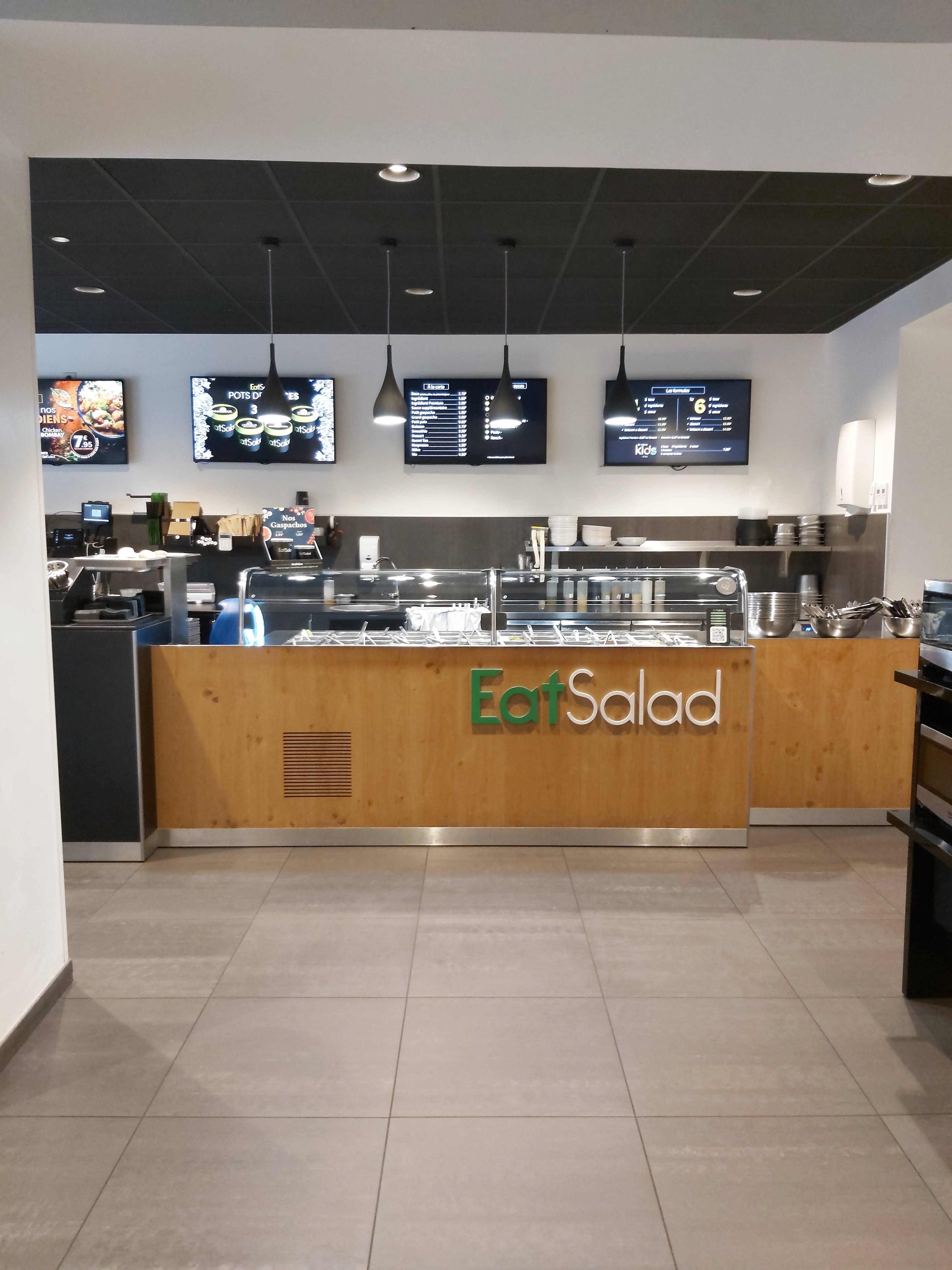 Endroit agréable. Pour l’instant un peu moins de monde que dans les autres Eat Salad de la ville ce qui permet d’être servi plus rapidement et d’être dans un endroit plus tranquille. La même qualité que dans les autres magasins de la chaîne, que ce soit sur la fraîcheur des produits ou sur leur qualité (notamment la brioche tropezienne). Bons softs également.
