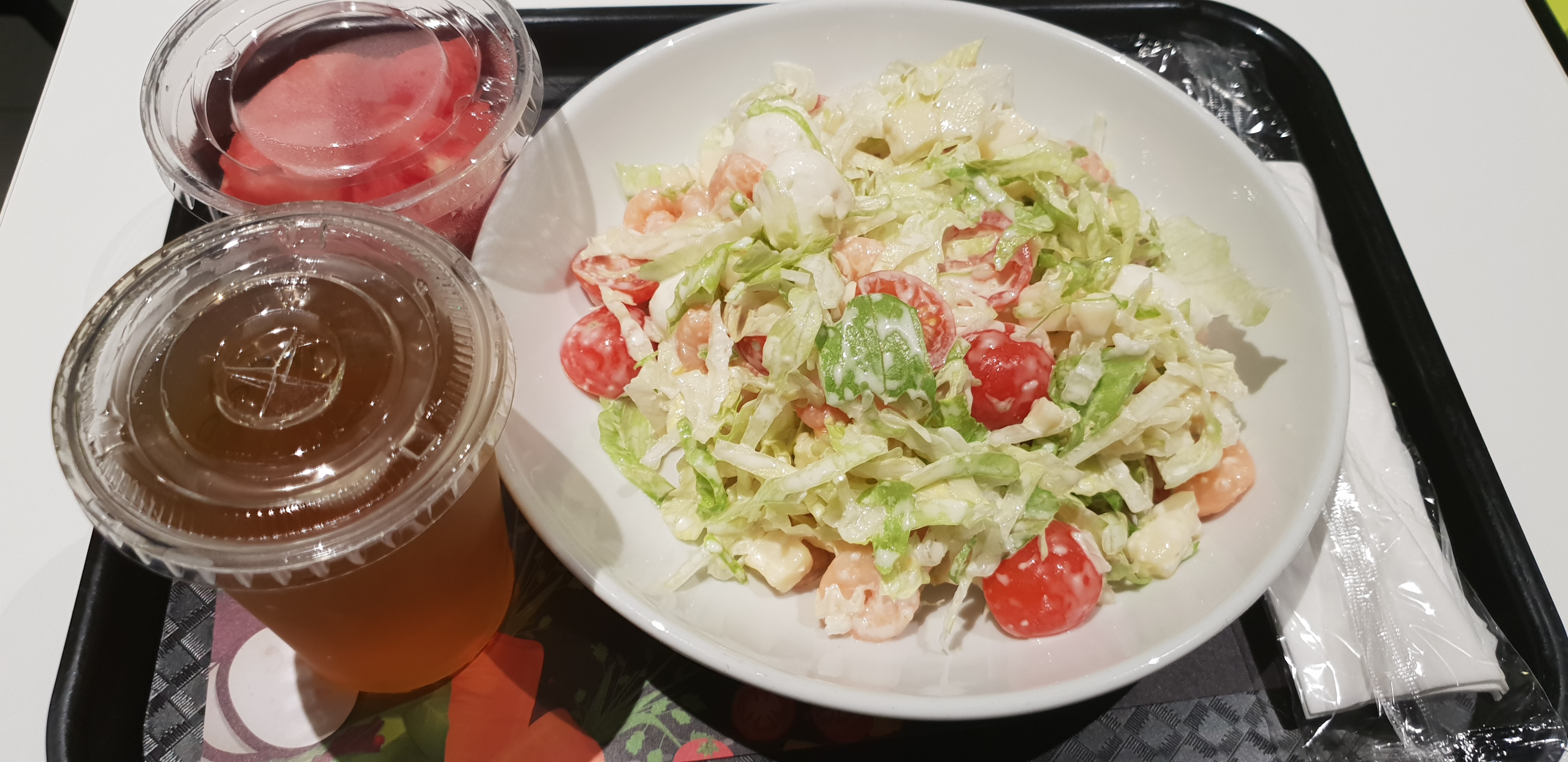 Très rapide, très bon, beaucoup de choix génial quand on veut composer la salade par nous même. Je trouve le comptoir mal disposé pour choisir la boisson et le dessert.