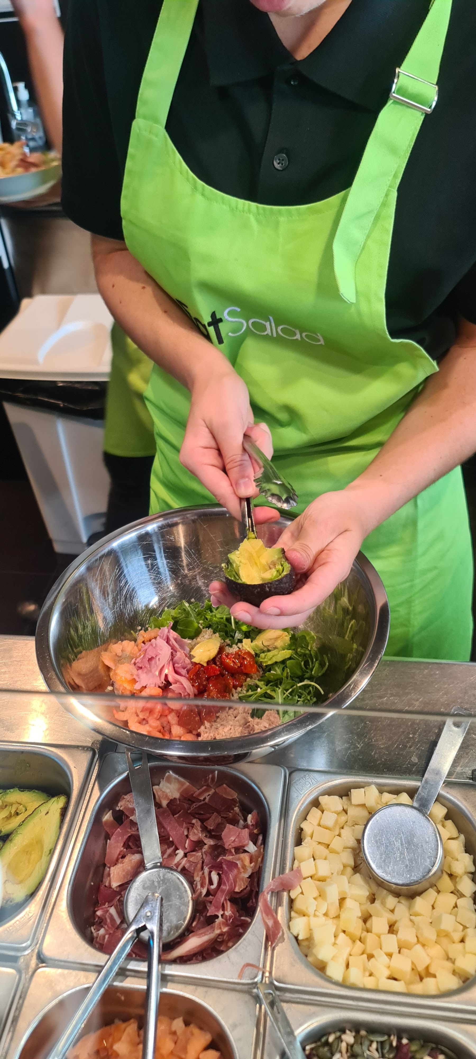 Equipe souriante et rapide. Beaucoup de choix d’ingrédients pour composer sa salade. Concept national très bien pensé.