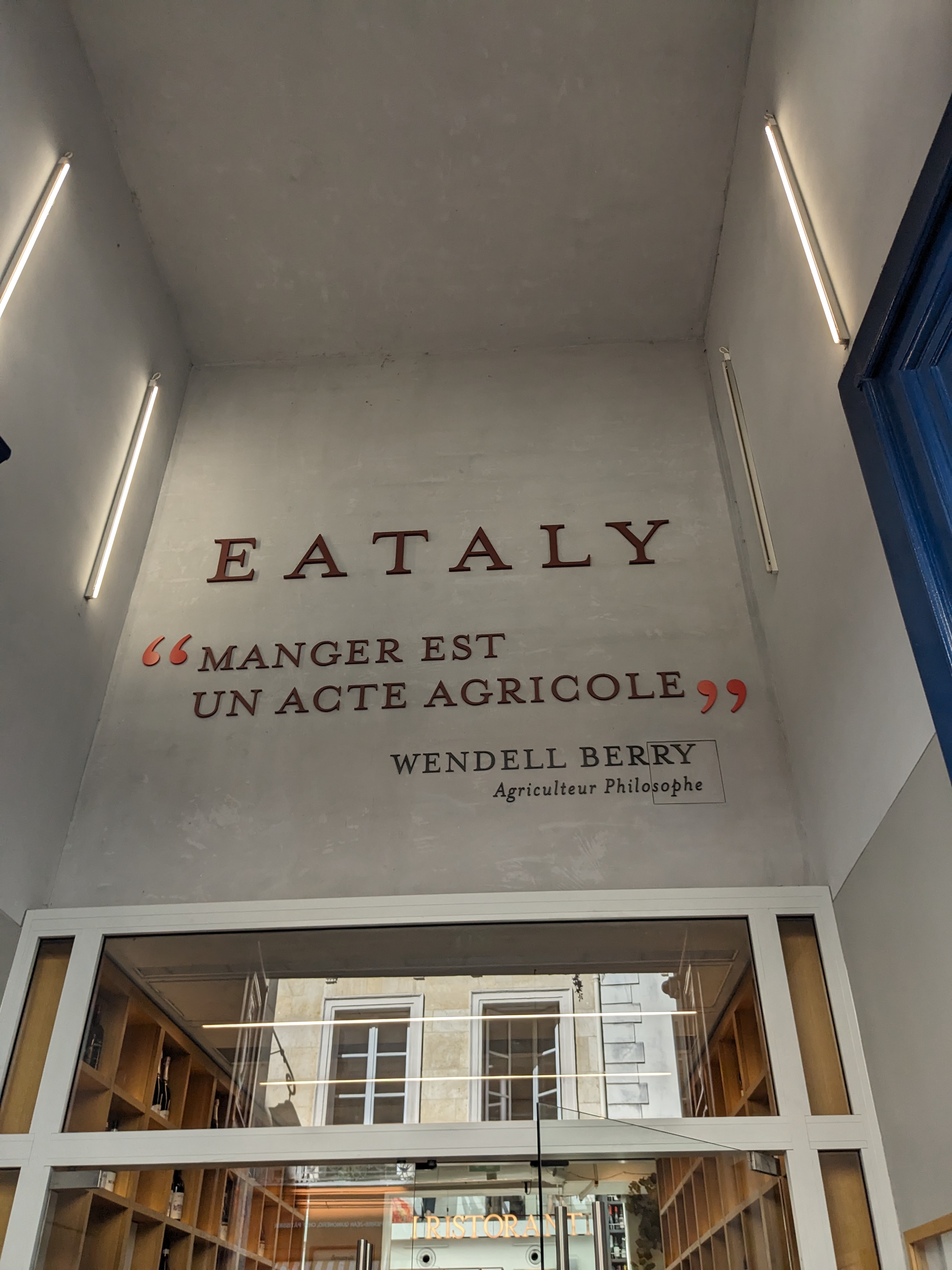 Déçu de notre repas chez Eataly …on nous vend des pâtes soit disant fraîches et faites maison j’en doute . Payer 52e pour deux cuillères de gnocchi gorgonzola noix et une boisson c’est abusé et attrape touristes .L’accueil est froid et la salle niveau hygiène pas top . Bref je passe mon chemin