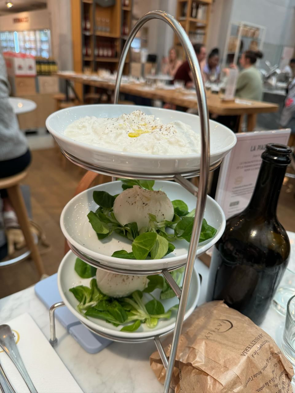 Déçu par la nourriture que nous avons trouvé ordinaire. Le goût, la qualité pas exceptionnelle. Aux heures d affluence il y a Énormément de monde, il faut faire la queue. Il y a beaucoup de bruit. Les tables sont petites.En revanche l intérieur est très sympa. 3 étages, beaucoup de produits italiens sont proposés à la vente. La décoration est agréable. Le personnel est réactif et a l écoute.