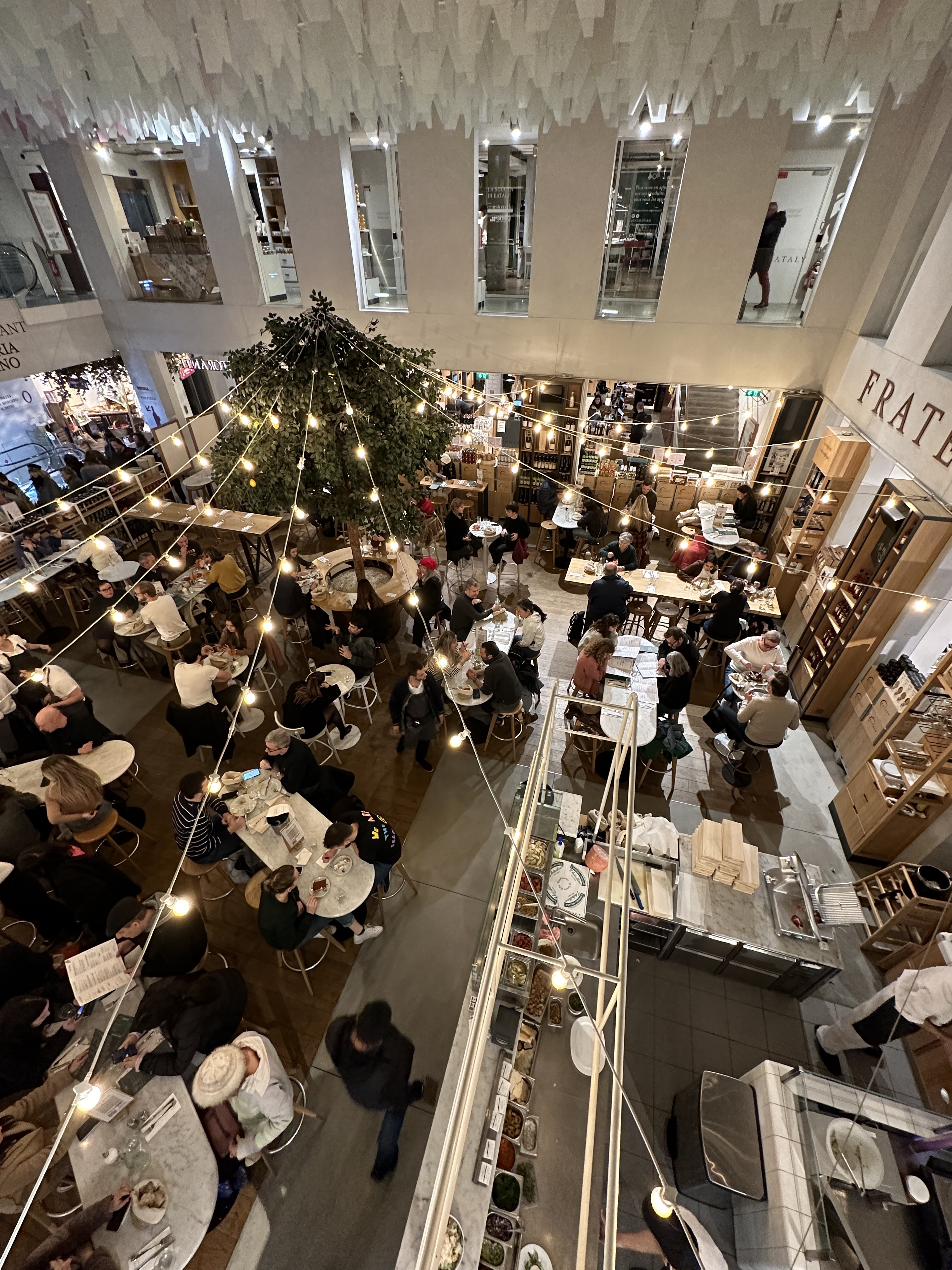 Excellente découverte, une sorte de 'bon marché' mêlant restaurants et magasins, le tout sur la thématique de la gastronomie italienne. Très bonne qualité et authenticité. Service rapide et haut de gamme.