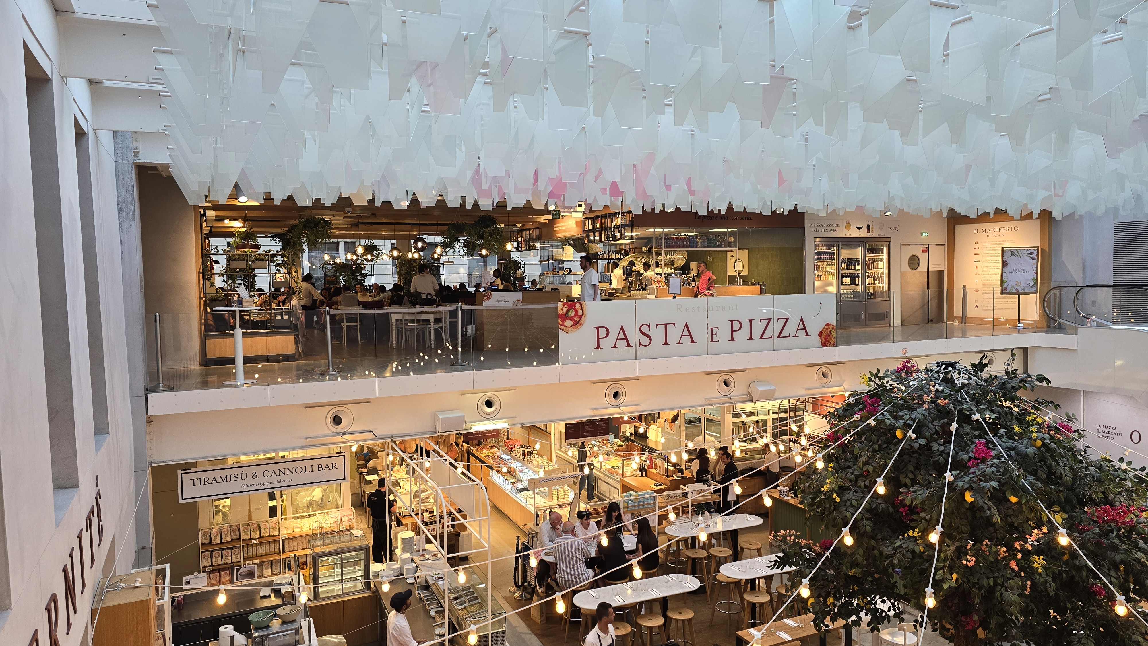 Super concept regroupant toutes les saveurs/produits italiens dans un seul endroit. Les lieux sont magnifiques et le personnel agréable concernant les restaurants situés au Rdc et premier étage, s’agissant certains commerces : l’amabilité n’est pas leur fort 😌et retire une étoile.