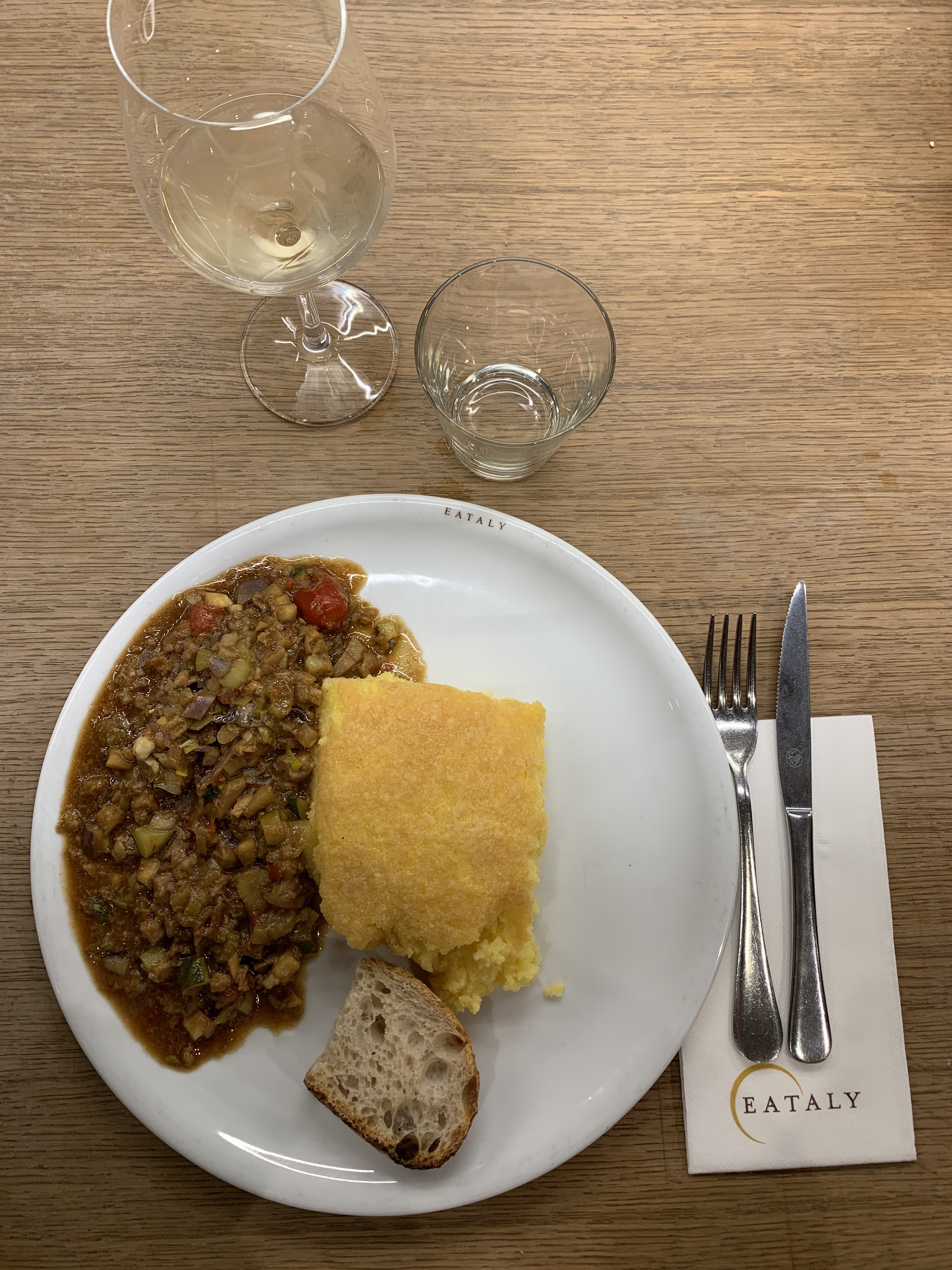 Troisième fois a EATALY depuis longtemps... la au restaurant piazza celui du bas... franchement déçu de la qualité de la cuisine... burrata melon jambon sans goût... mon amie a pris la tartine scarmoza et speck ... sec et vraiment pas bon. Le cannolo était bien.. Le verre de vin très chère 7e50 ...