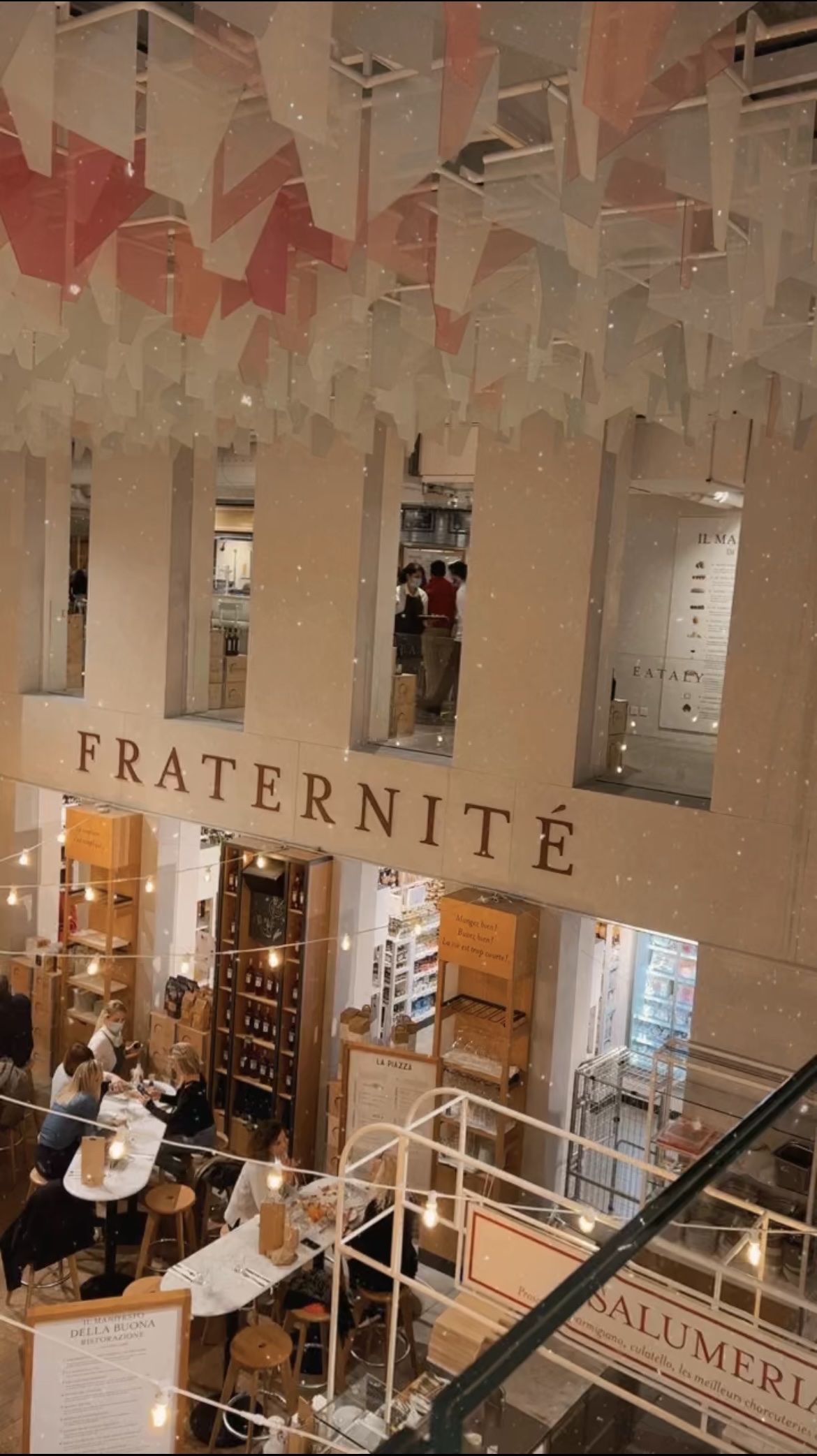 Si j’ai un endroit préféré à Paris c’est clairement Eataly, t’es JAMAIS déçu. Il y a un supermarché pour faire des courses, avec que des produits italiens de qualité. T’as également des différents ambiances, pour prendre un café, un resto pizza, un autre plutôt pour les pâtes et l’extérieur une très belle terrasse pour prendre une boisson ou à manger. Rien à dire j’adoree