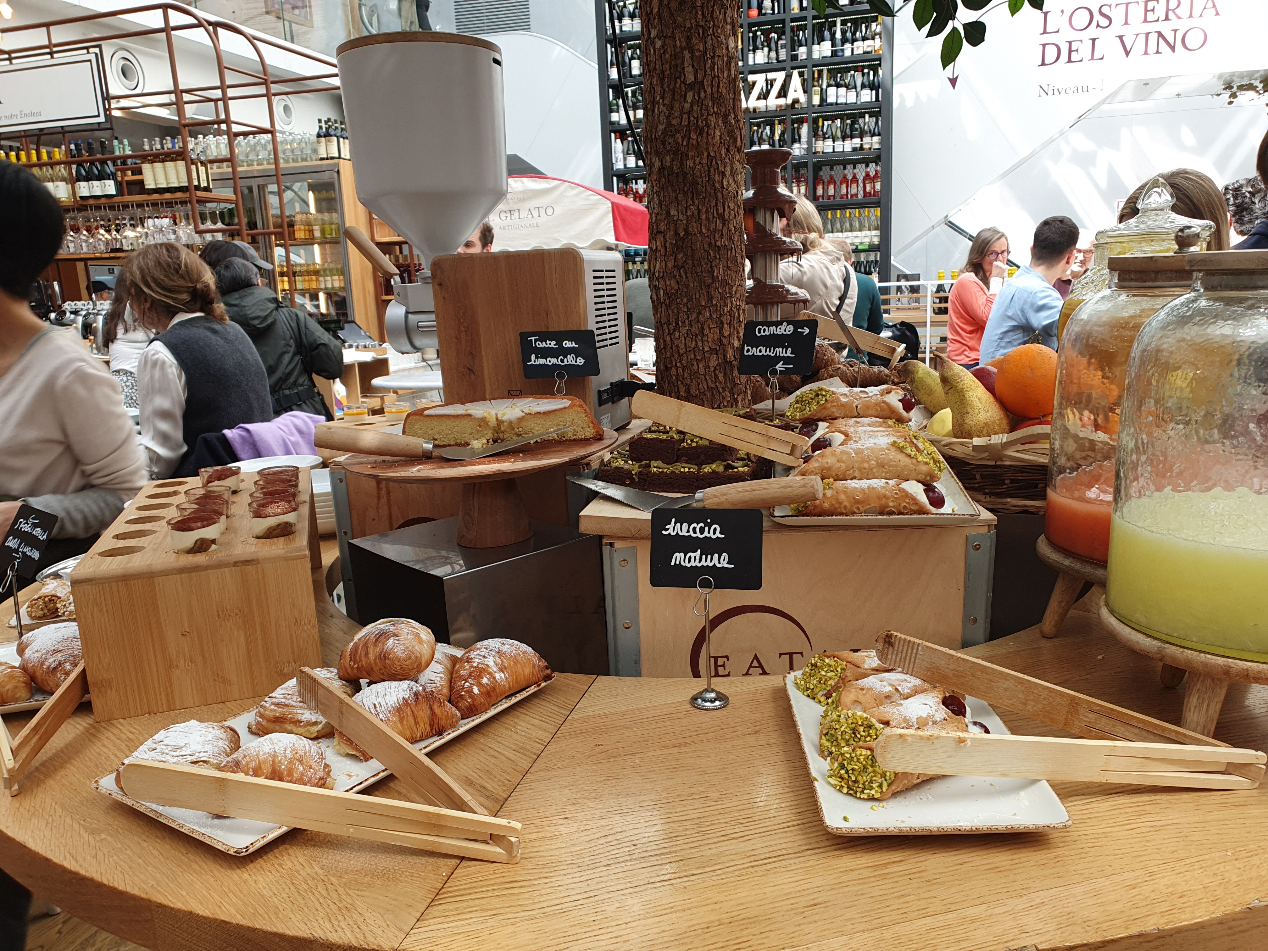 On a essayé le brunch, servi le dimanche. C’est un super brunch italien, avec de très bons produits salés et sucrés. Un plat chaud est également proposé. Un vrai régal, avec de vraies saveurs italiennes. Évidemment, on ne résiste pas à faire un tour dans les allées marchandes ensuite… Une superbe adresse !