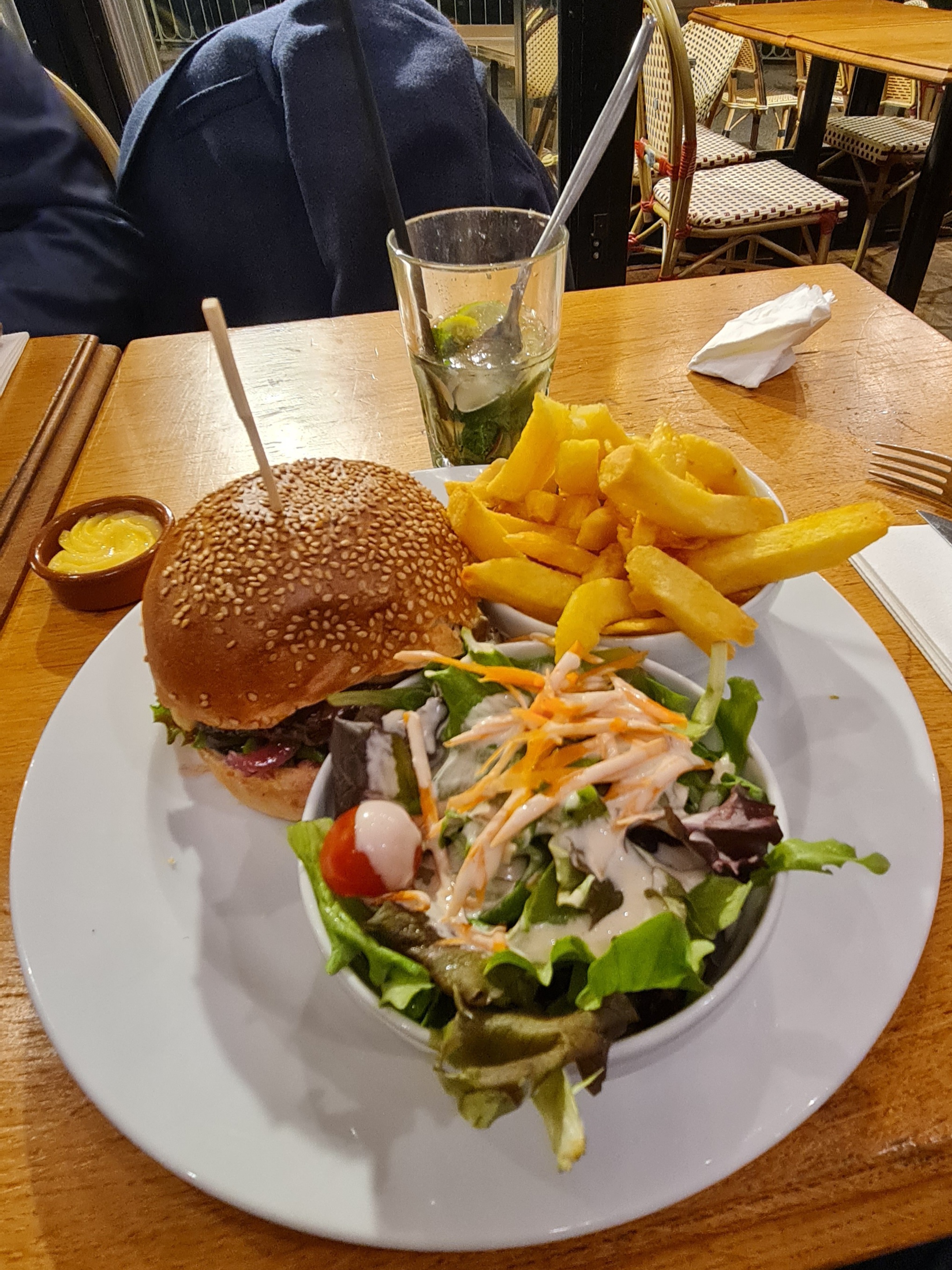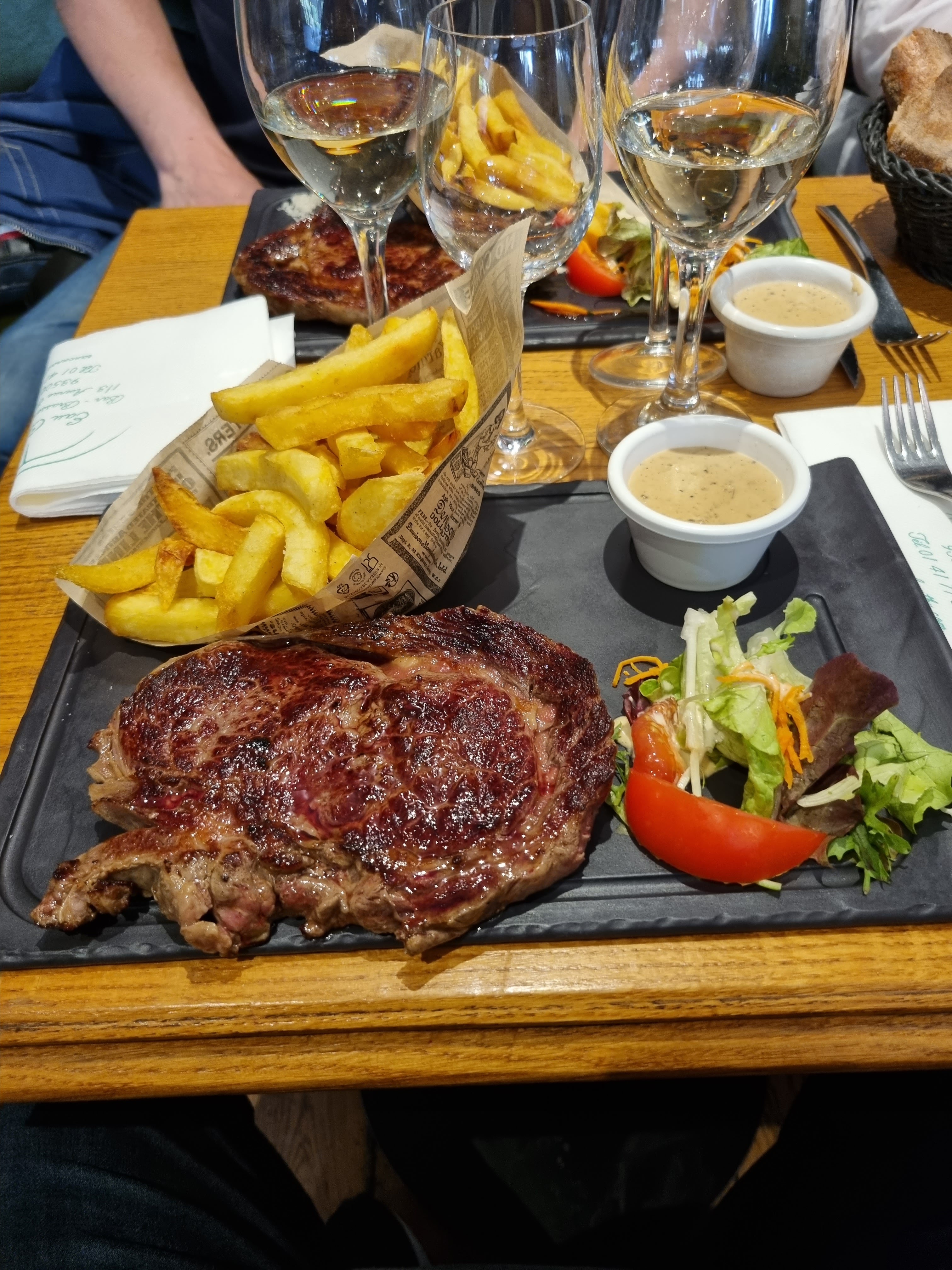 Vue depuis cette place, déjà validé Ensuite place au repas, carte exhaustive, choix de moule frite Trop bon et généreux, rapport qualité prix Wow Mon pote a pris une salade, la périgourdine ce sera la prochaine En vrai faut venir faire toute la carte lo