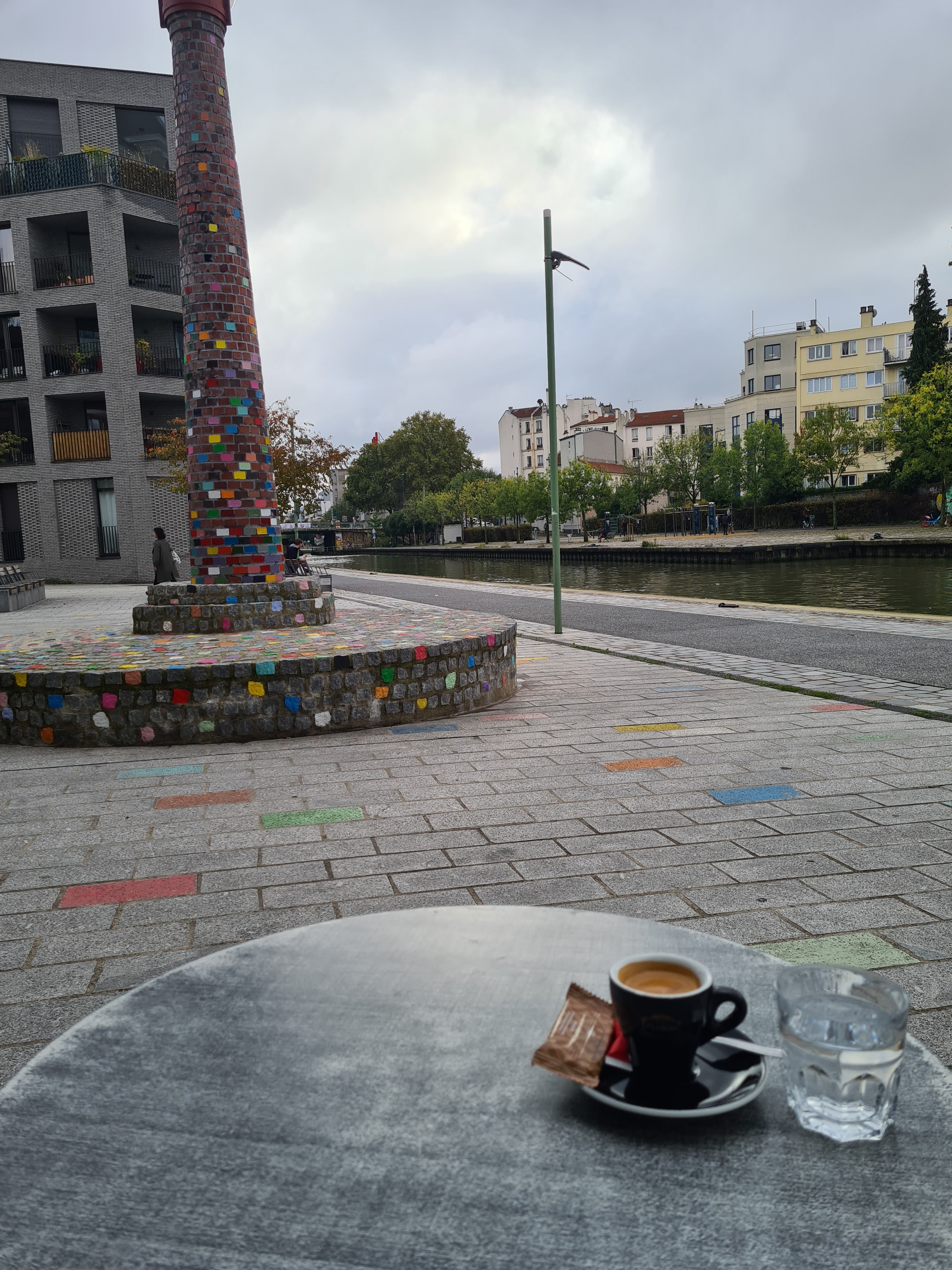 Génial cette endroit, pour déjeuner et boire un petit café en amoureux, bon c' est pas la campagne mais ça repose un peu l esprit devant le canal