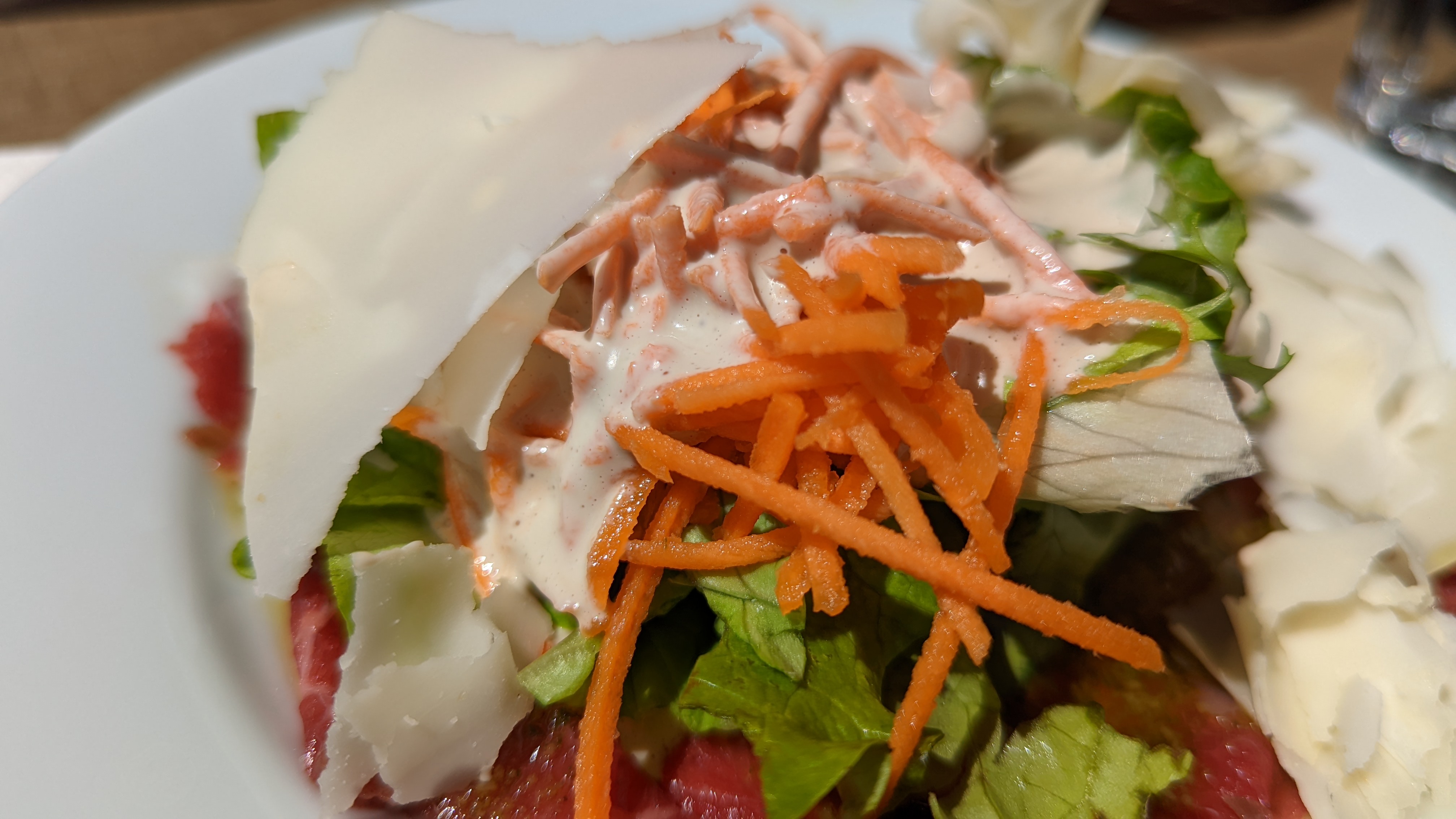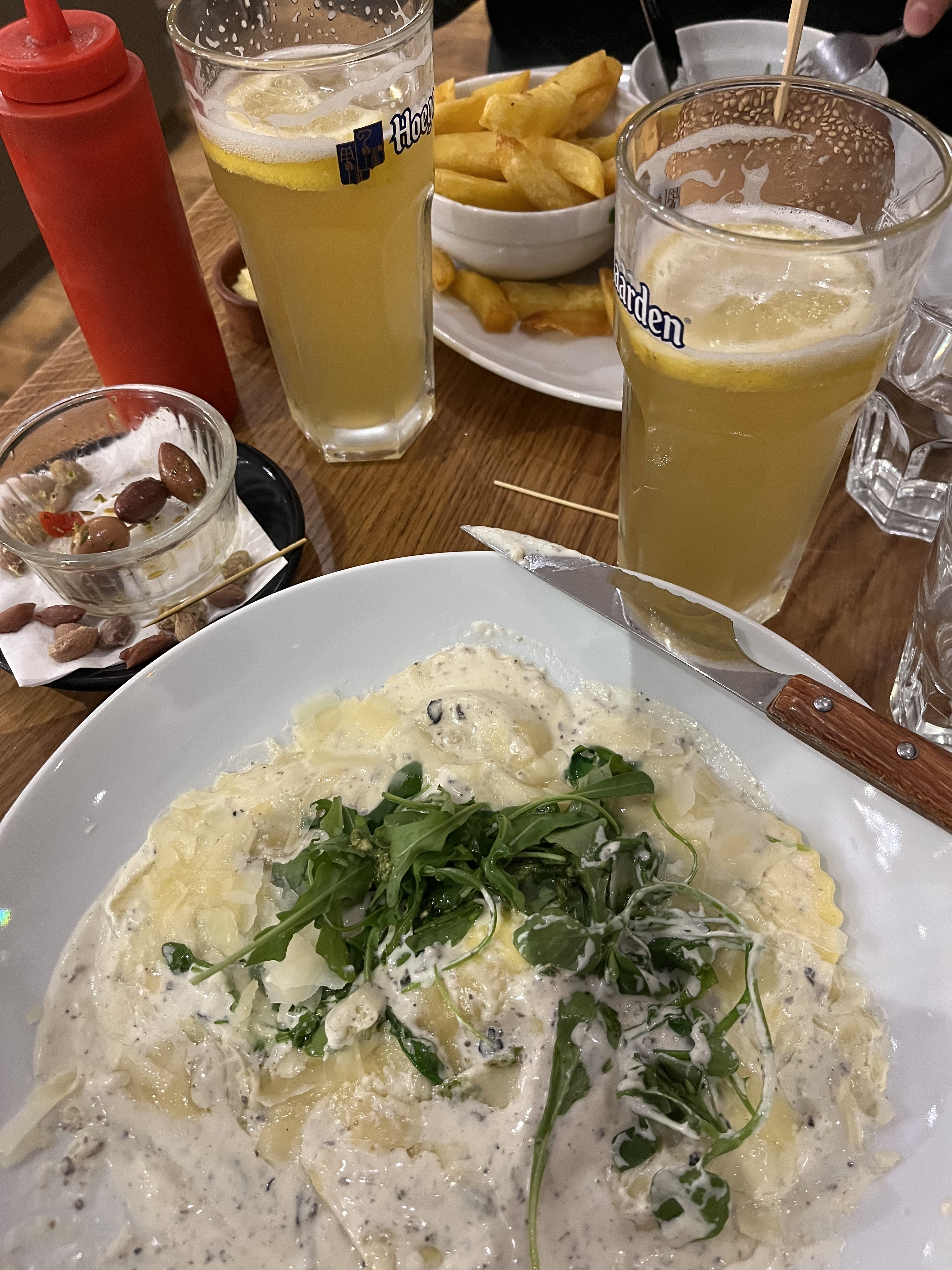 Déçue. Nous étions 3, pas de souci avec l'entrée, mon plat, les spaghettis n'étaient pas cuite du tout, (pas al denté), la viande excellente quoique un peu grasse. Pour le dessert, demandé une tarte aux poires, c'était un gâteau aux poires, bon, mais en fin de repas c'est lourd surtout pour un dîner De plus, mon fils a pris un tartare de boeuf, assaisonné, il n'a pas aimé, mais il a été malade toute la nuit, diagnostic : intoxication alimentaire. Personnellement, je n'y retournerai pas, de plus, les plats basiques sont chers un burger 15€, osso bucco 17,50€!!!!