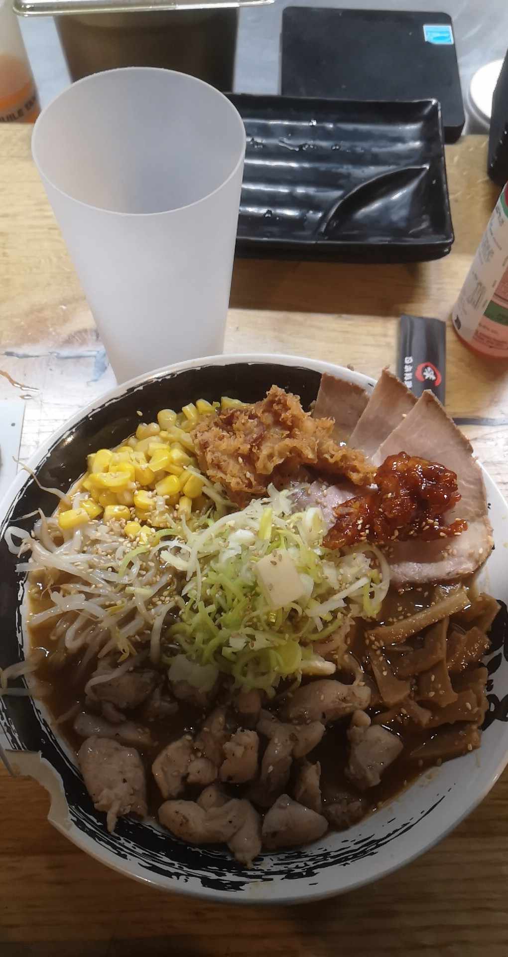 J'y ai déjeuné deux fois une fois avec Hasami - Age Don, qui était très délicieux car la côtelette de porc était très bien frite et le riz m'a fait tomber plus longtemps que je ne le pensais. La deuxième fois, j'ai eu du Tantanmen qui était plus épicé que prévu. Les deux étaient bons, mais je recommanderais davantage le Hasami-Age Don. Vous pouvez également emporter ou dîner sur place. en été, vous pouvez également manger à l'extérieur, l'intérieur est un peu petit donc buvez en hiver. Il peut être un peu difficile de manger là-bas, mais l'atmosphère vous donne quand même le style japonais de manger seul dans un bar qui semble assez authentique.