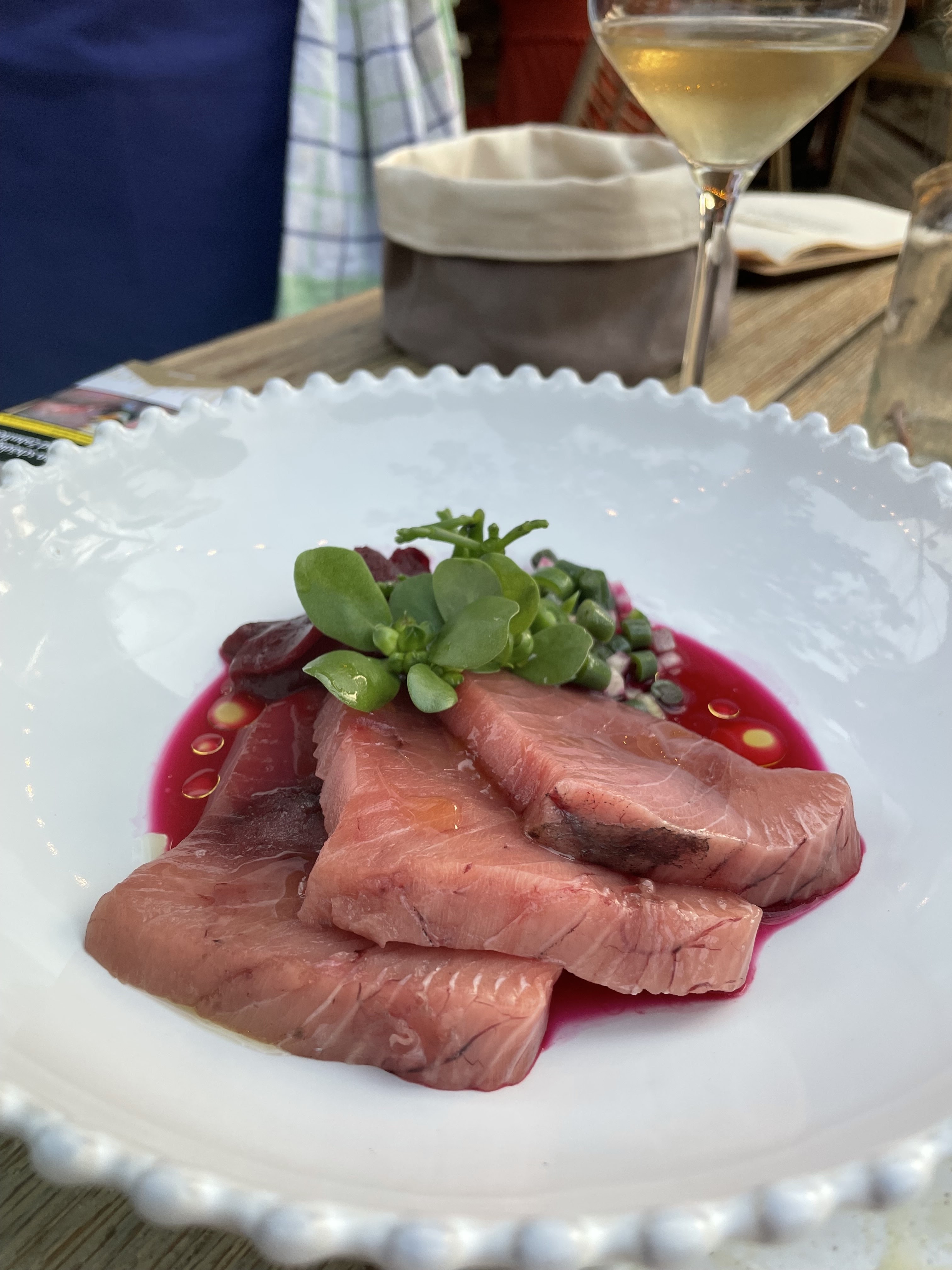 Ça faisait longtemps que je n'avais pas mangé une côté de bœuf aussi délicieuse. L'entrée était succulente également : carpaccio coeur de burrata avec haricots verts et mure. Une découverte. A tester ! 🤗