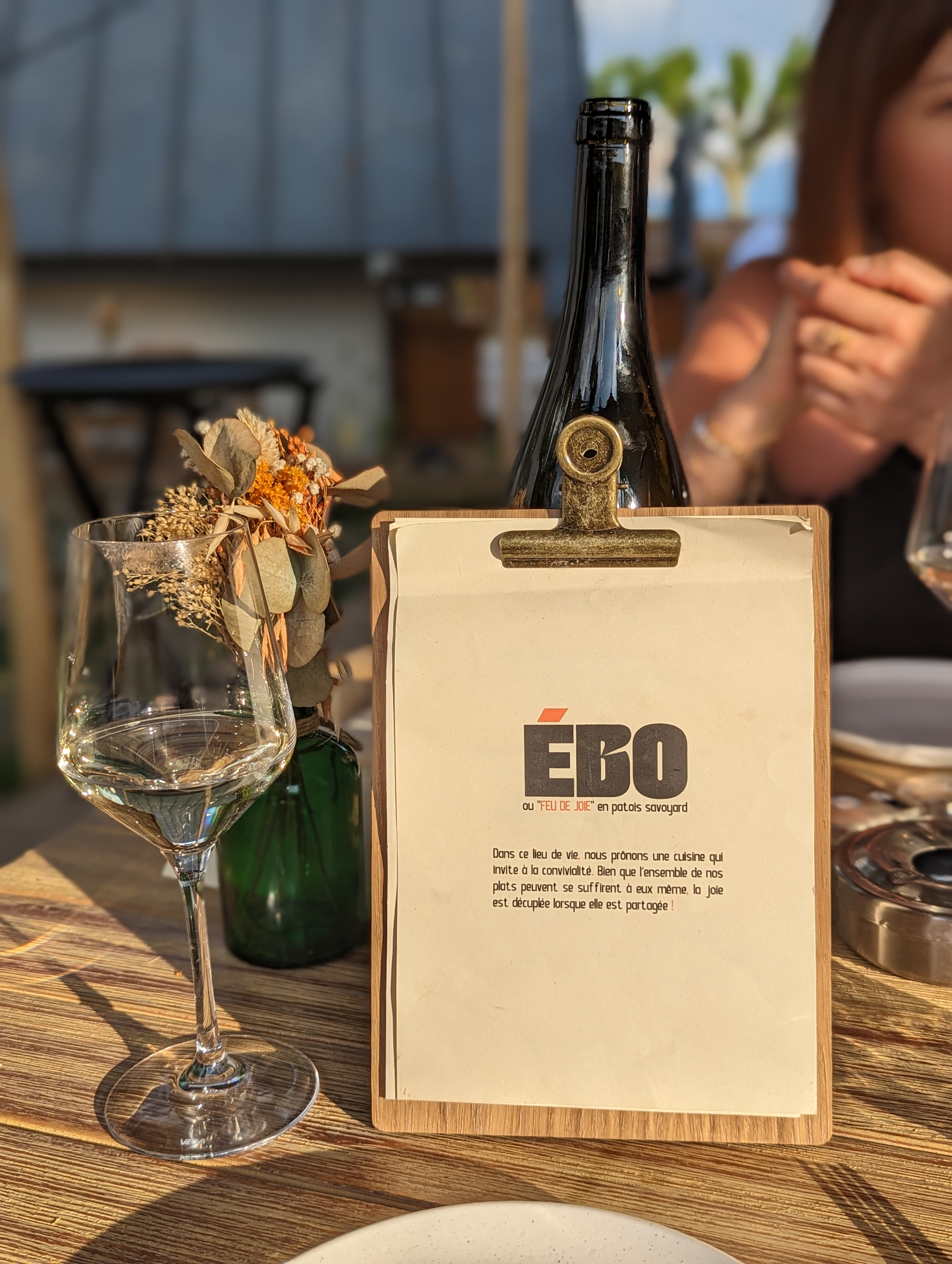 Deux très bonnes expériences chez Ebo tant au bar qu’au restaurant. Le cadre est très agréable. Le service est parfait. La carte des mets proposées est restreinte ce qui est rassurant : cuisine maison et au brasero : du bonheur ! Le spritz maison est excellent. La carte des vins est recherchée et très abordable. En résumé un spot génial pour l’été.