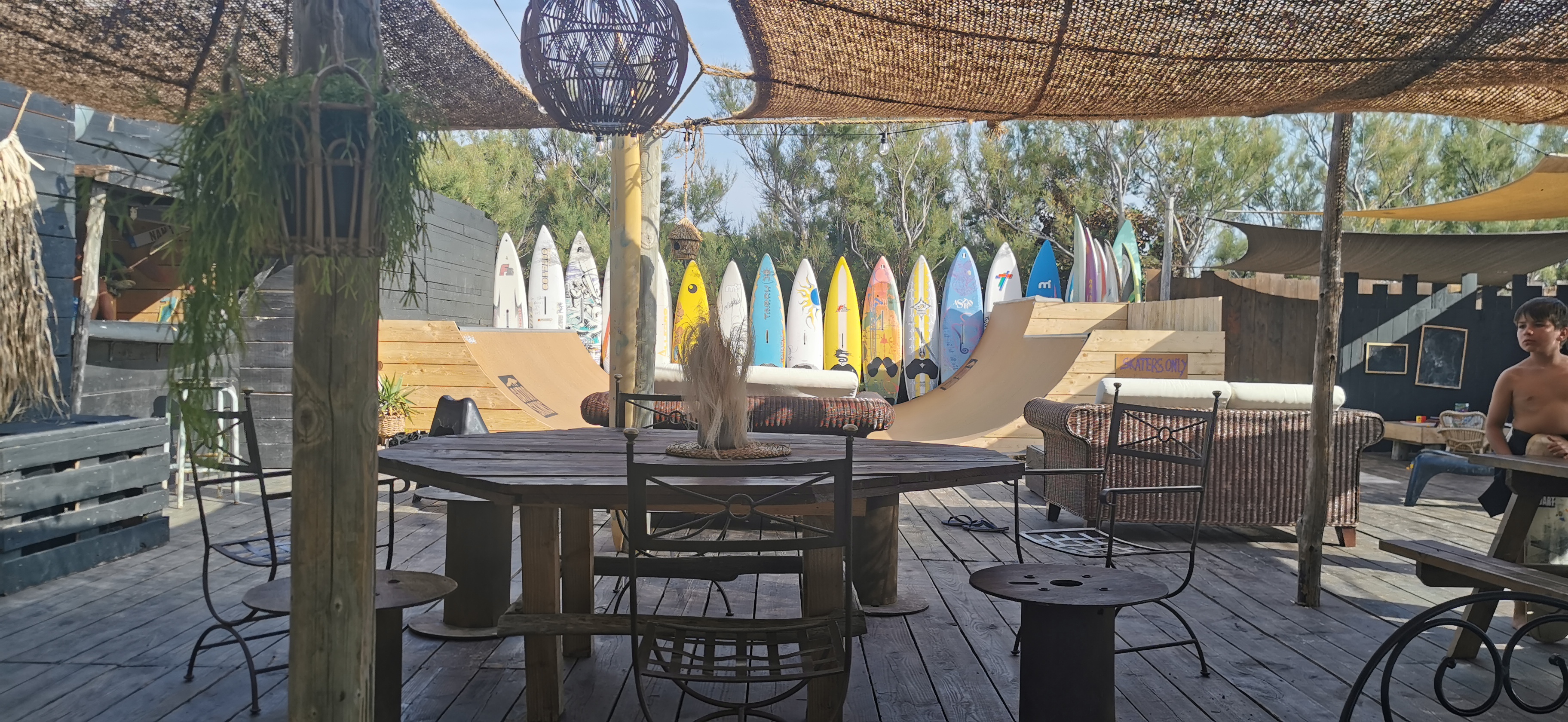 Super club que ce soit pour apprendre ou perfectionner son niveau de planche que pour se poser et manger.