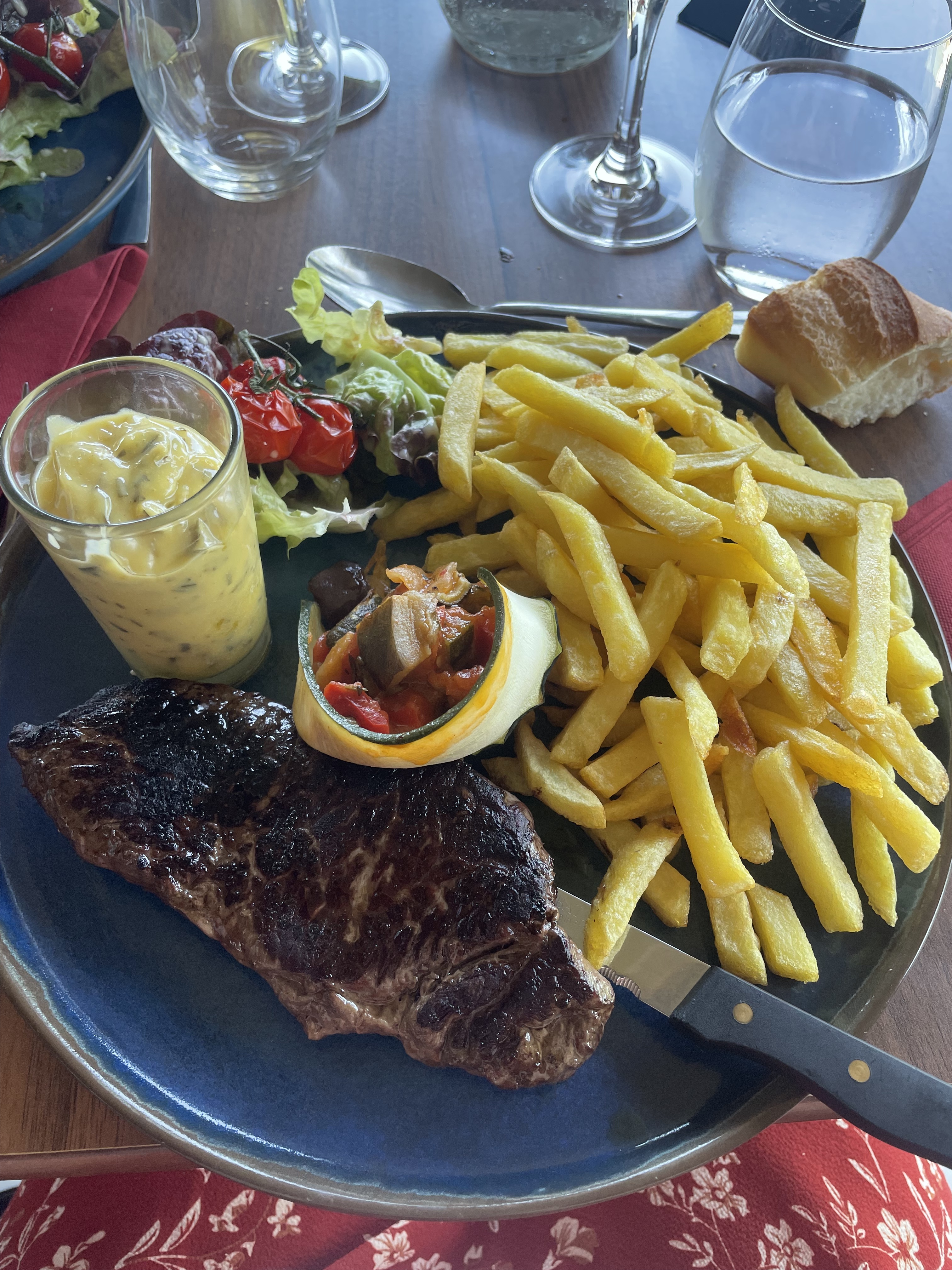 Commençons par l’entrée, j’ai commandé une entrée fraîcheur pastèque, melon, salade, tomate ? burrata ? je ne sais pas où sont celles-ci mais visiblement pas dans mon assiette… J’ai vu des gens les réclamer et ensuite comme par magie ceux-ci étaient dans toutes les entrées, le chef ne connaît pas ses recettes ? Il faut réclamer les aliments pour les avoir ? Ensuite pour le plat… si vous voyez un plat avec de la sauce bernaise, ne le prennez pas, autant manger du beurre fondu avec des herbes sans goût, les frites vraiment bof, je ne vais pas parler de la longueur du service car nous avions été perdu parmis les commandes, des gens arrivés après nous mangeaient déjà leurs dessert alors que nous venions de recevoir les plats, moyens, pas de geste commercial sur la note en plus… Bref le cadre est jolie ce qui rehausse la note, nous pensions que les avis étaient unpeu dur mais non, je ne recommande pas désolée.