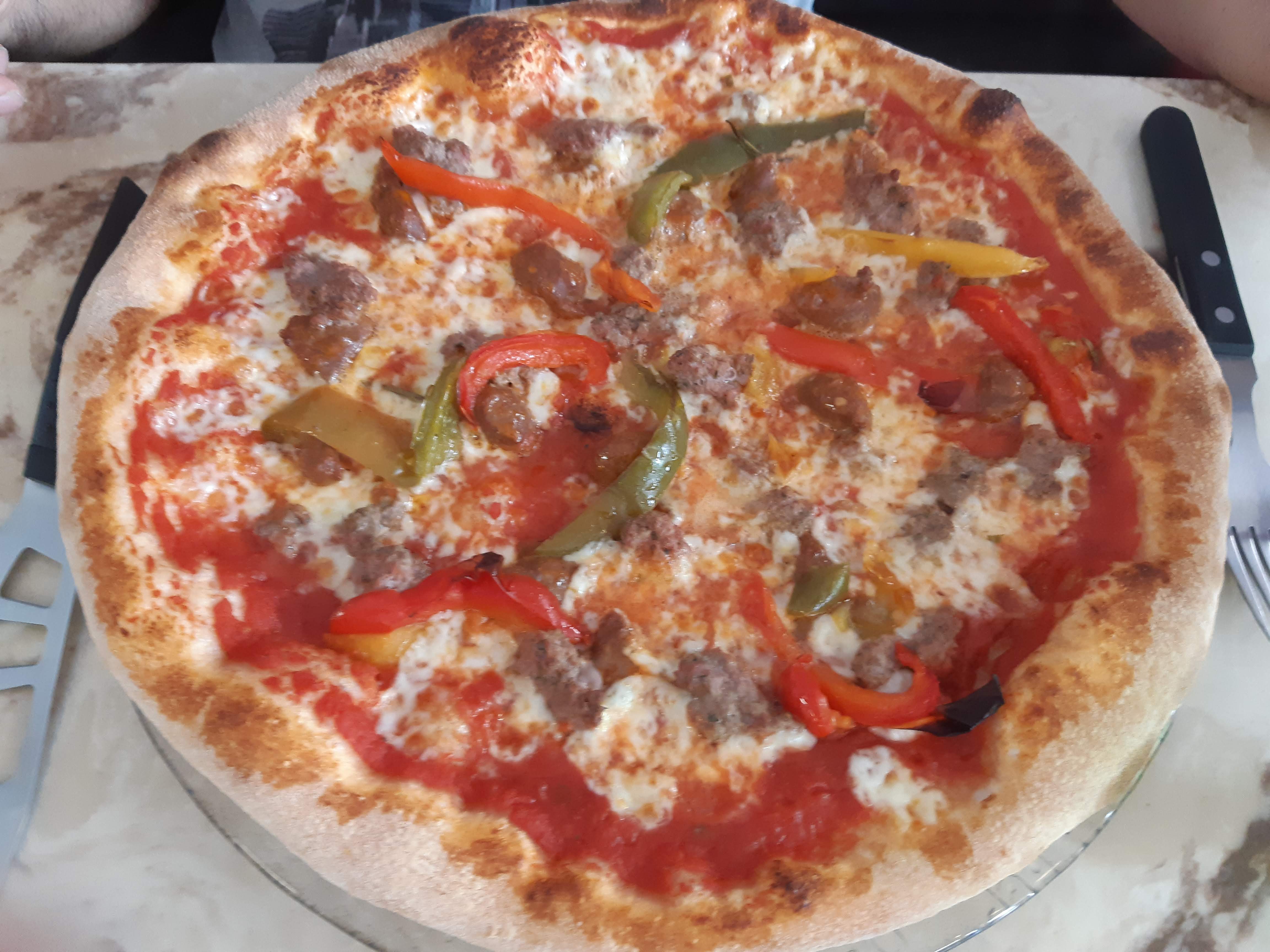 Belle pizza! La pâte est très bonne comme à l'italienne. J'avais pris une calzone aux fromages ! Dommage qu'il n'y avait pas de sauce tomates à l'intérieur, elle aurait bien meilleure. Enfin ce n'est que mon goût personnel ! Je recommande pour les amoureux des pizzas !