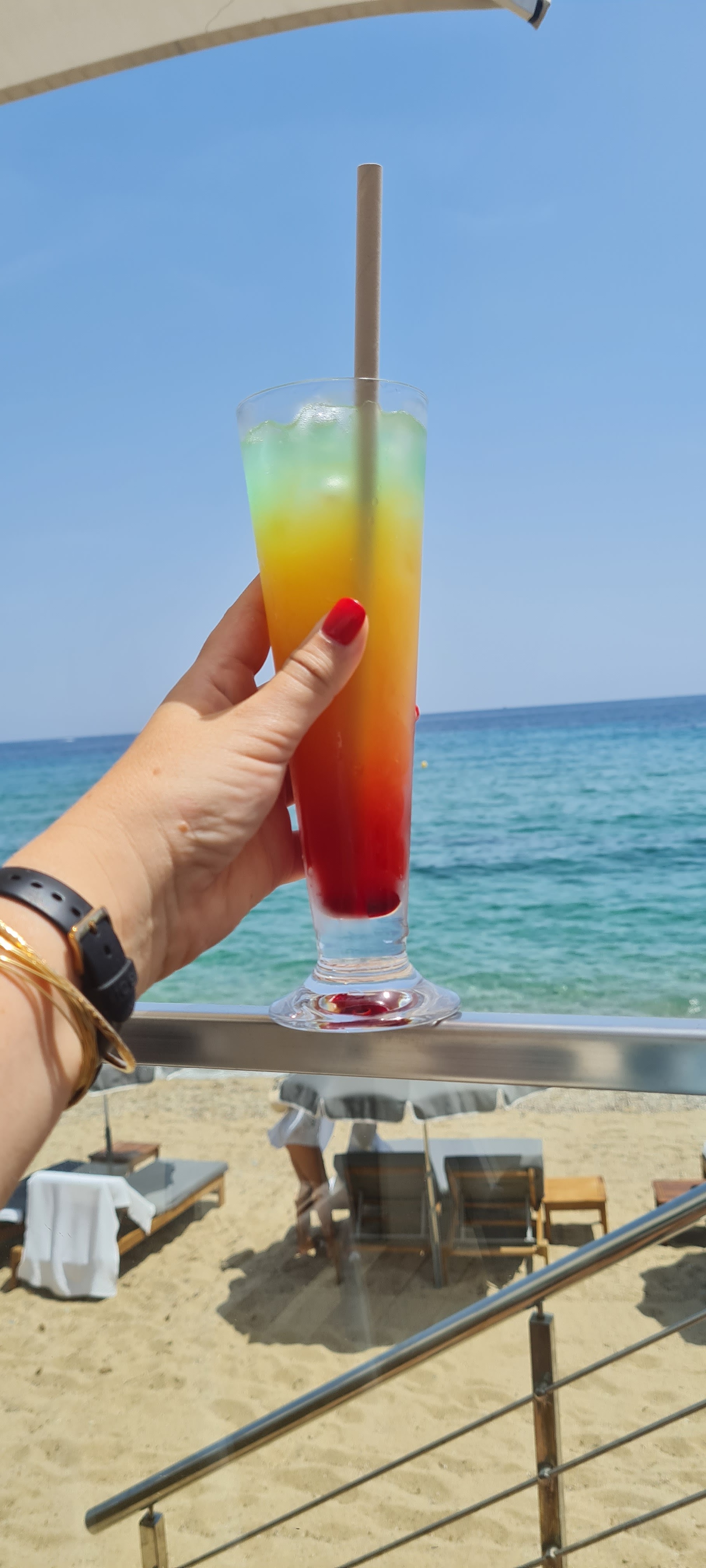 Tres belle plage a l eau l inpide. Acceuil grand luxe avec port du sac et installation des serviettes. Nous avons très bien manger au restaurant le midi.qui est très élégant.. par contre pas de grain de sable mais de petit cailloux minuscule. Donc pas de château de sable lol. Vraiment au top je recommende. PS si vous prenez un menu le midi cela grimpe vite.