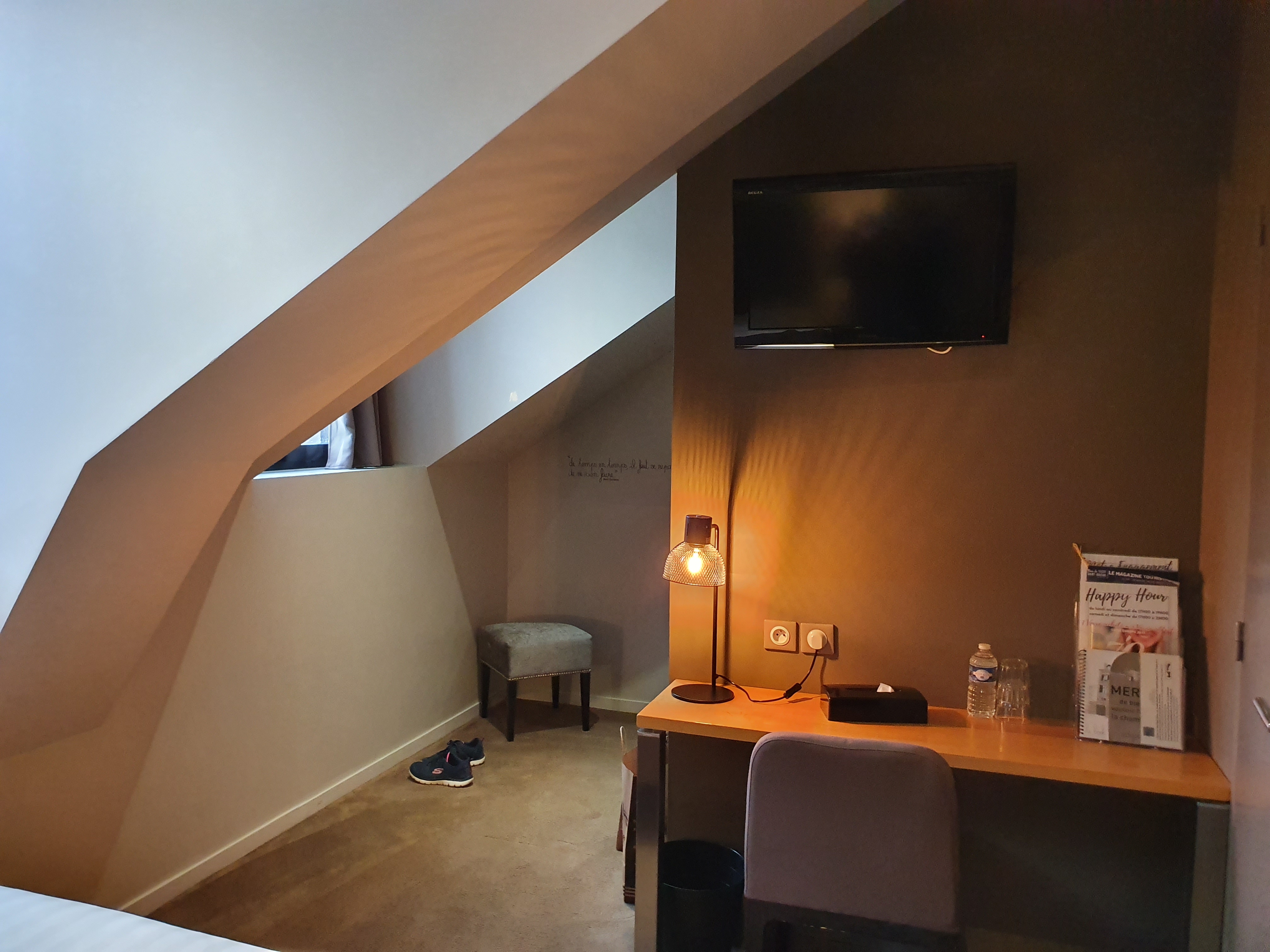 Personnel sympathique et acceuillant. Hotel relativement propre et présence de netflix dans les chambres. Cependant chambre bruyante, quelques traces suspectes sur la douche et cadre environnants. La literie est correcte et la décoration agréable. Il manquerait une bouilloire ou une cafetière pour pouvoir a défaut du petit déjeuner se faire un café ou un thé Situé en plein cœur de St Brieuc l'hotel degage un charme certain. Je recommande