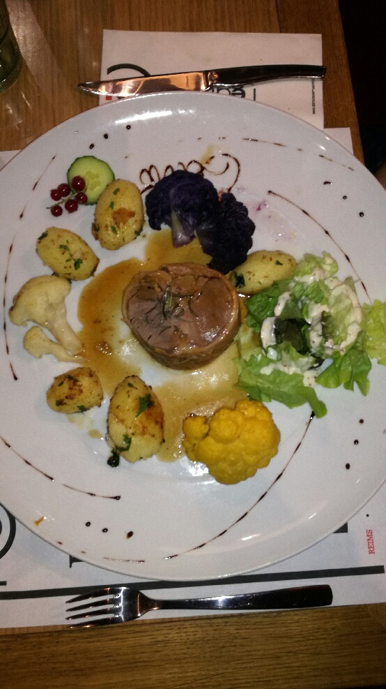 Il y a beaucoup de choix à la carte. Le service est parfait: il y a beaucoup de personnel avec le sourire! J'ai pris un pavé de bœuf qui était excellent. Pour le dessert : café gourmand composé de 4 petits desserts: là encore c'était excellent! Si vous êtes visiter St Quentin ou que vous avez envie de bien manger, je vous conseille cet endroit!