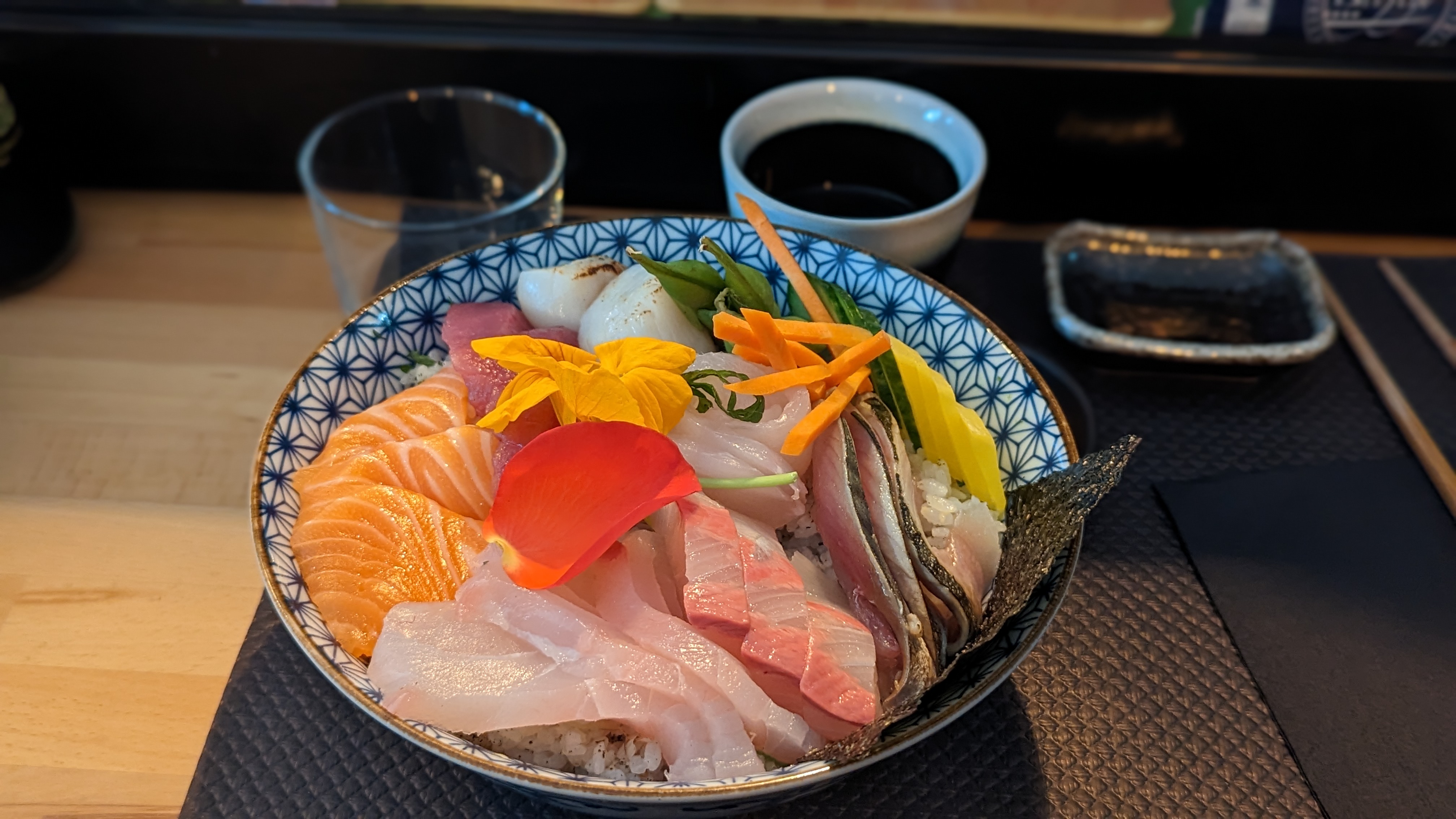 C'est la première fois que je mets 5 sur 5 pour un lieu, mais la qualité du poisson et le riz qui a un assaisonnement unique avec aussi des petites herbes dans le Chirashi le mérites. Enfin l'accueil est au top