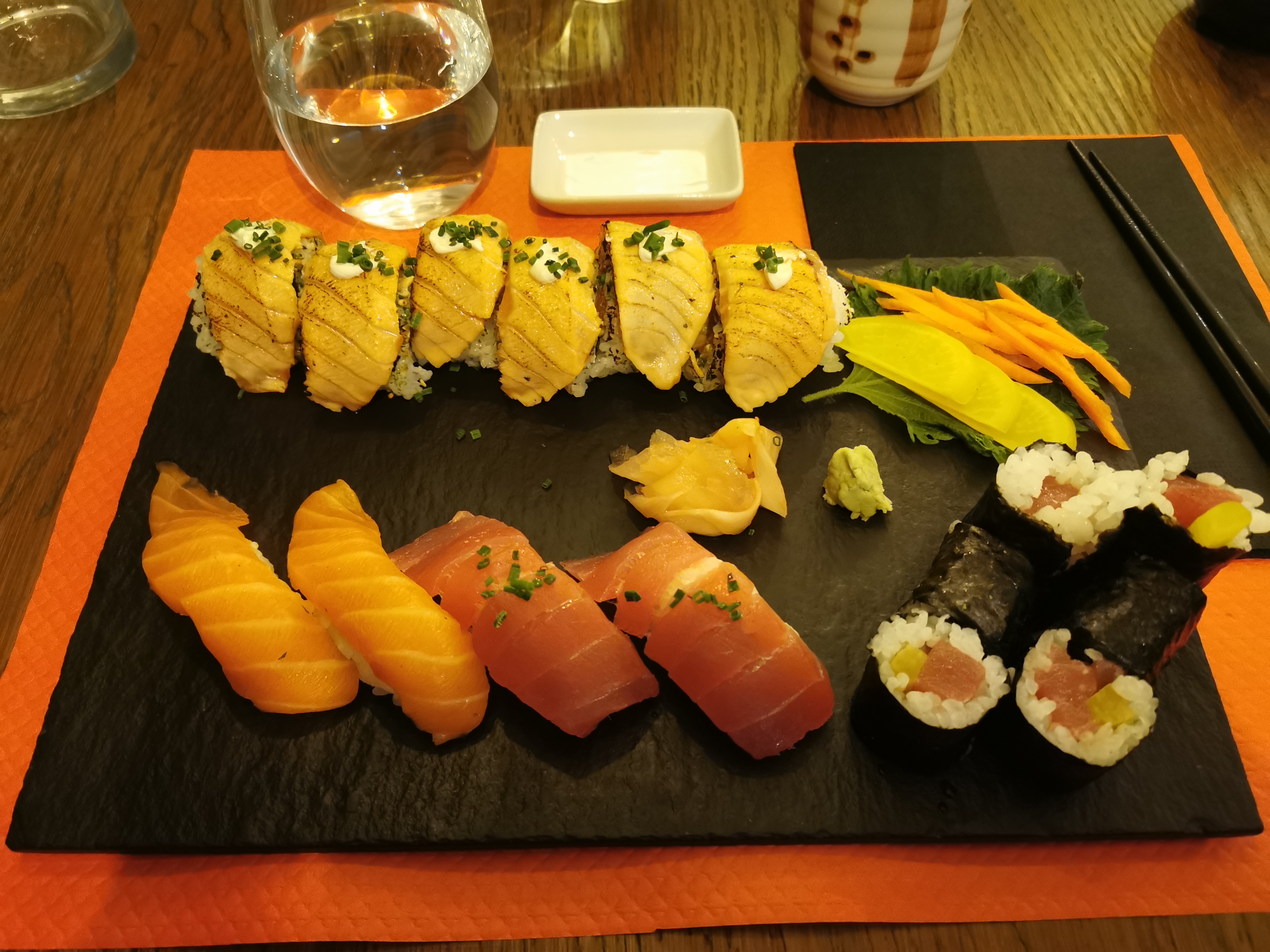 Nori Maki, sashimi, soupe et salade excellents et d’une fraîcheur remarquable. Grand choix de poissons et très bon accueil, nous y retournerons sans tarder.