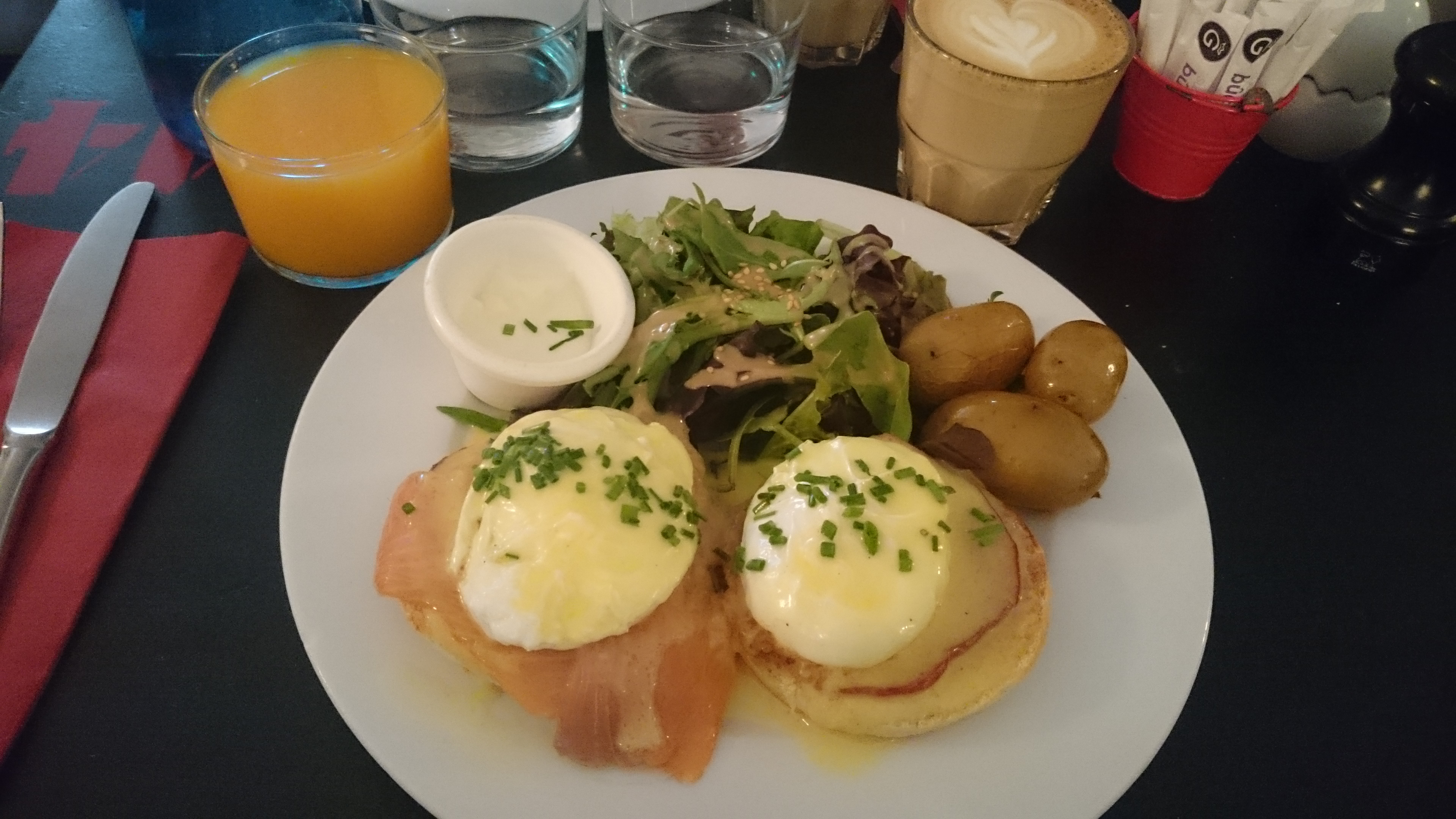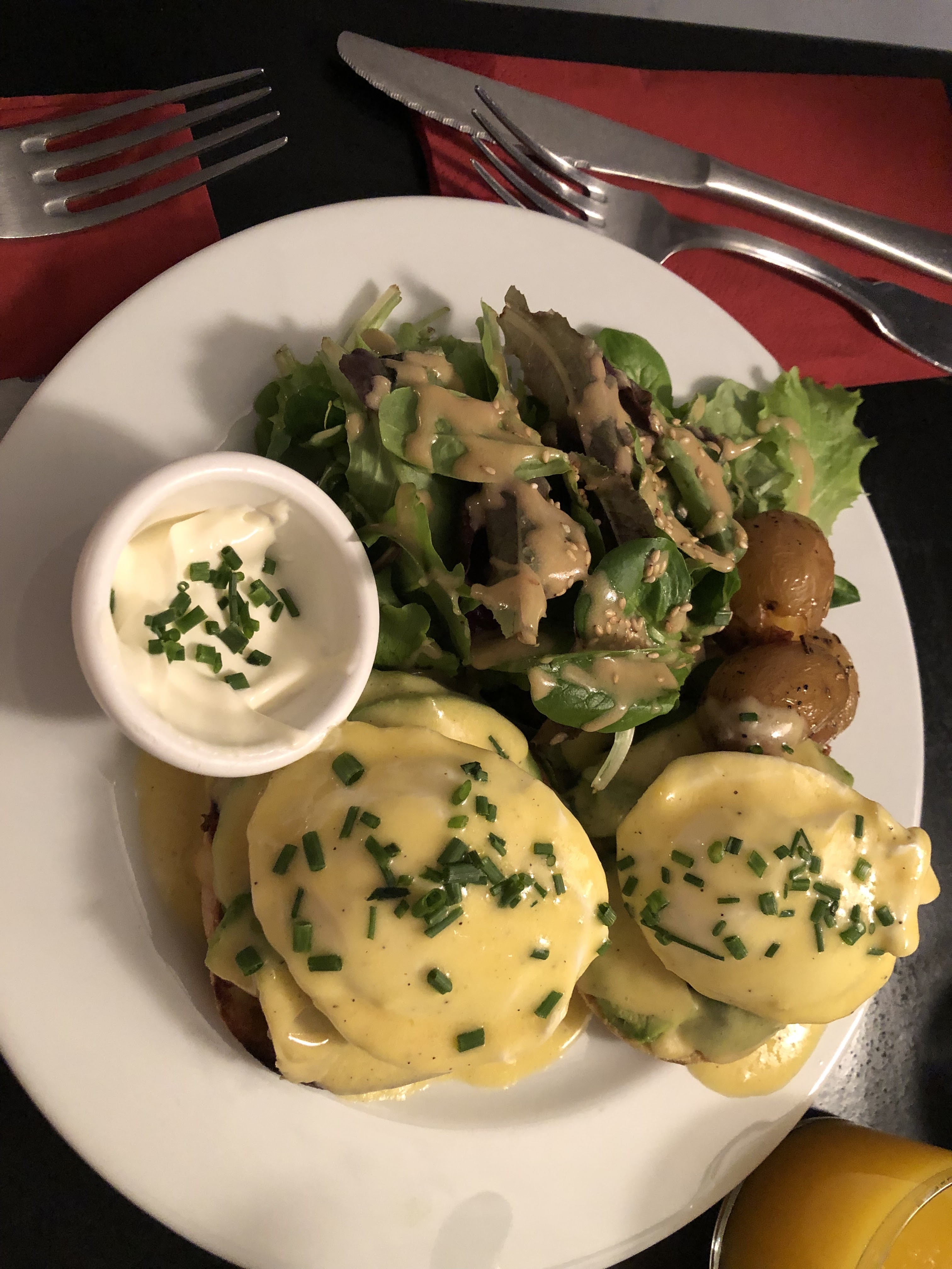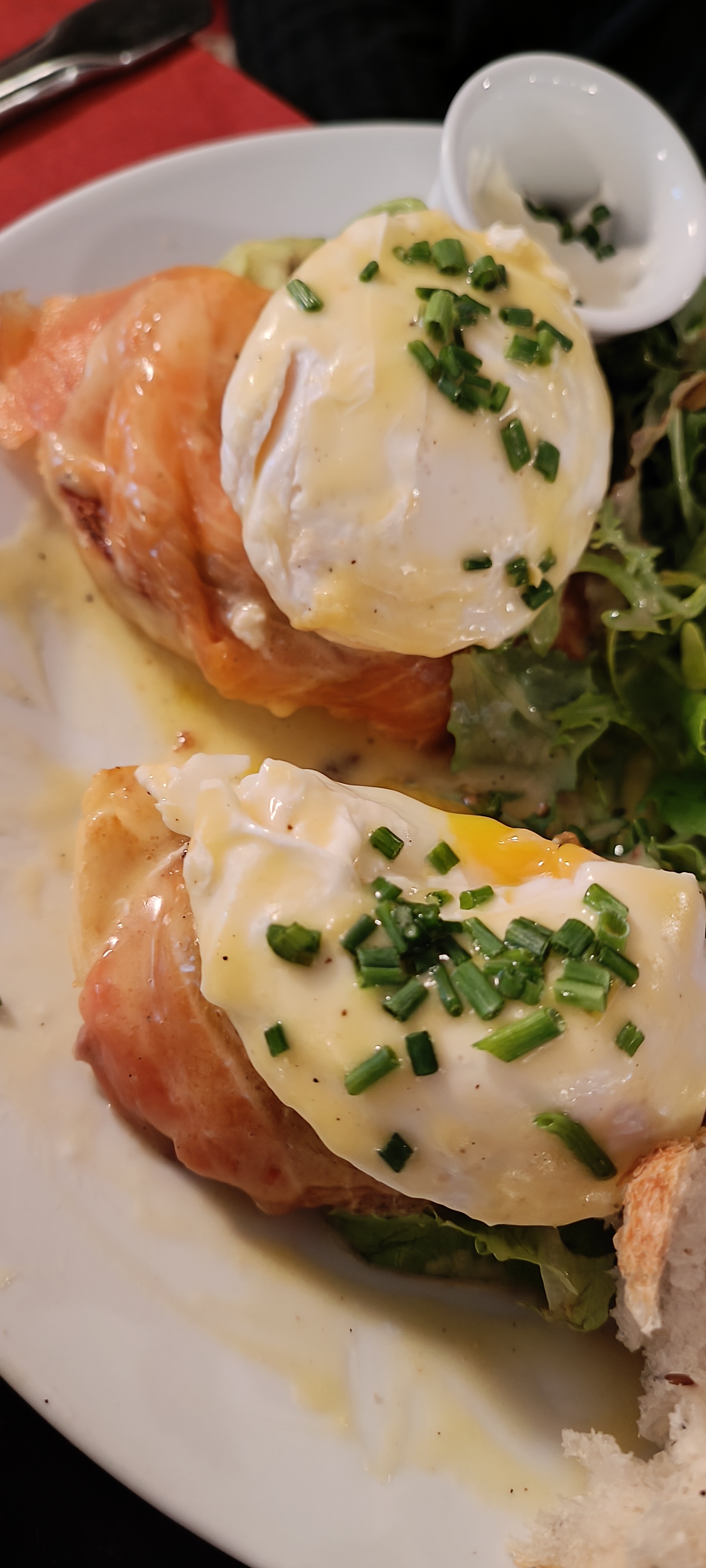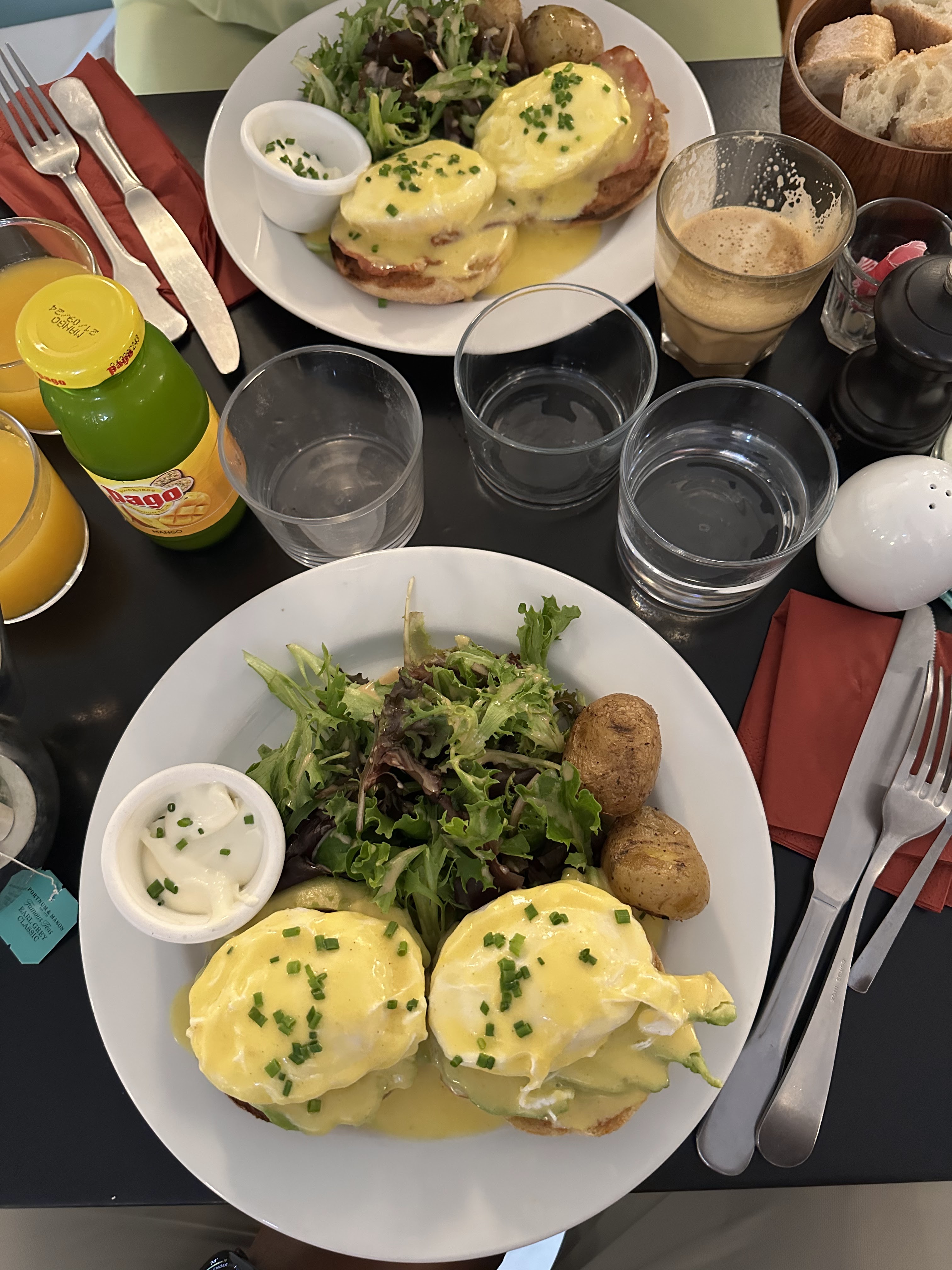 Petit déjeuner incroyable, je recommande les œufs Bénédicte au saumon