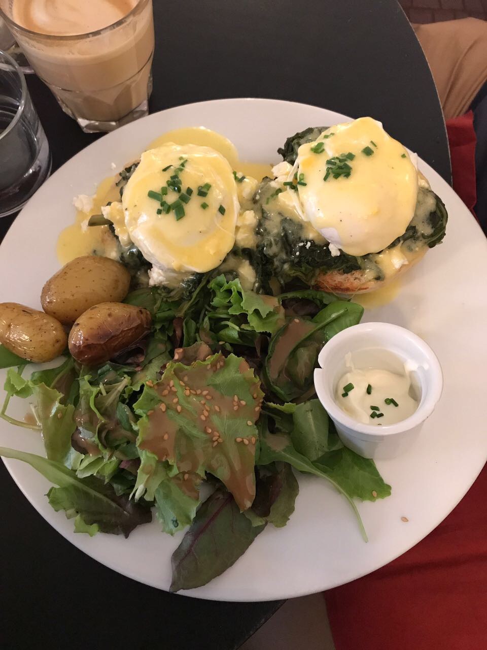 Tout était charmant ! Le restaurant lui-même était très spacieux et confortable et nous nous sommes assis immédiatement. J'ai eu les œufs Benedict à l'avocat, qui étaient géniaux. La hollandaise n'était pas trop épaisse, la salade fraîche et les pommes de terre parfaitement rôties. Une portion très généreuse également. Le personnel, en particulier, était excellent. Très attentif sans être envahissant et super gentil et leur anglais était également excellent.