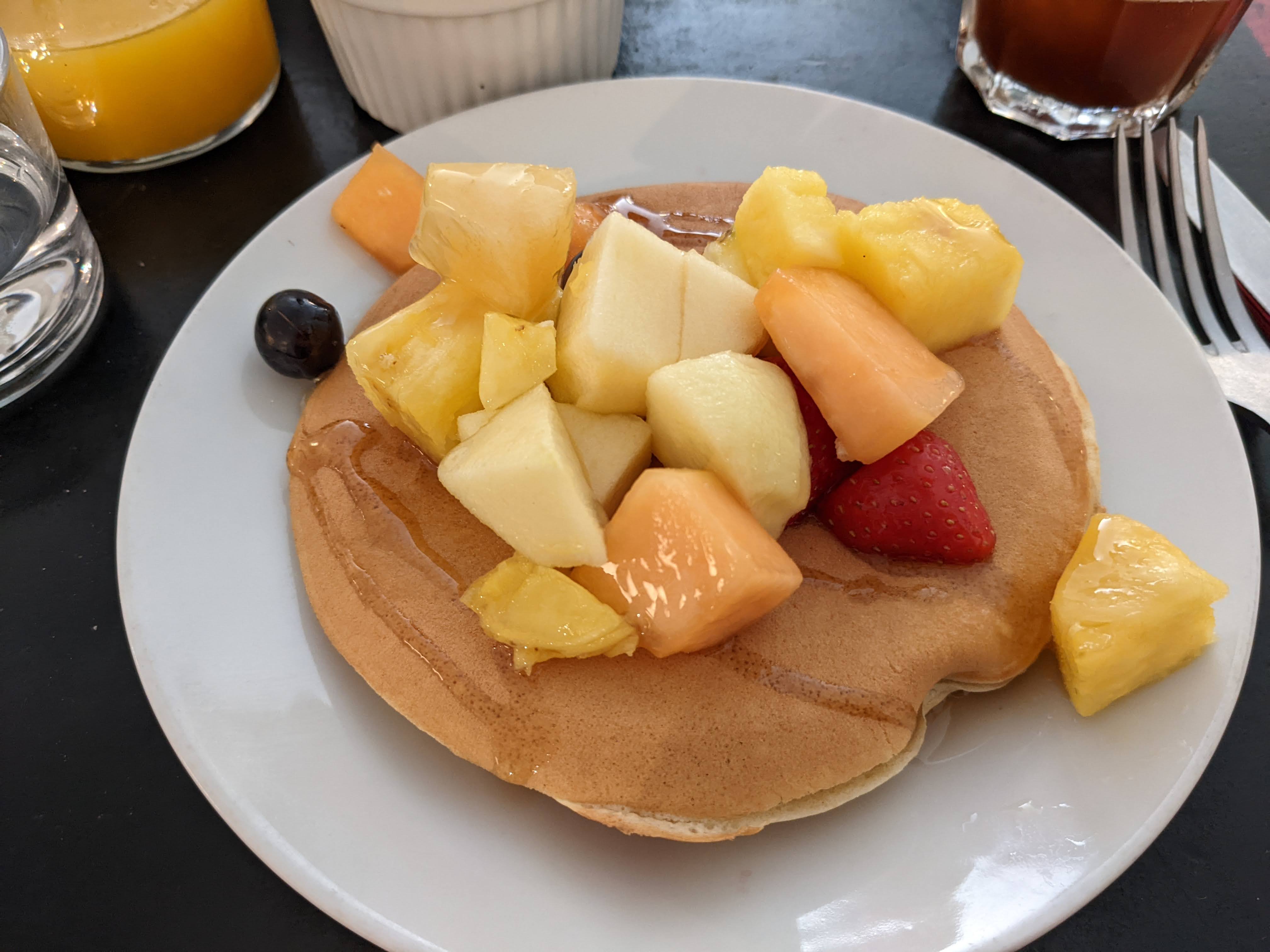 Excellente adresse pour les amateurs d'œufs, entre les œufs Bénédicte au saumon, les toasts, les pancakes, le jus d'orange pressé et la salade de fruits... Nous avons très bien déjeuné !