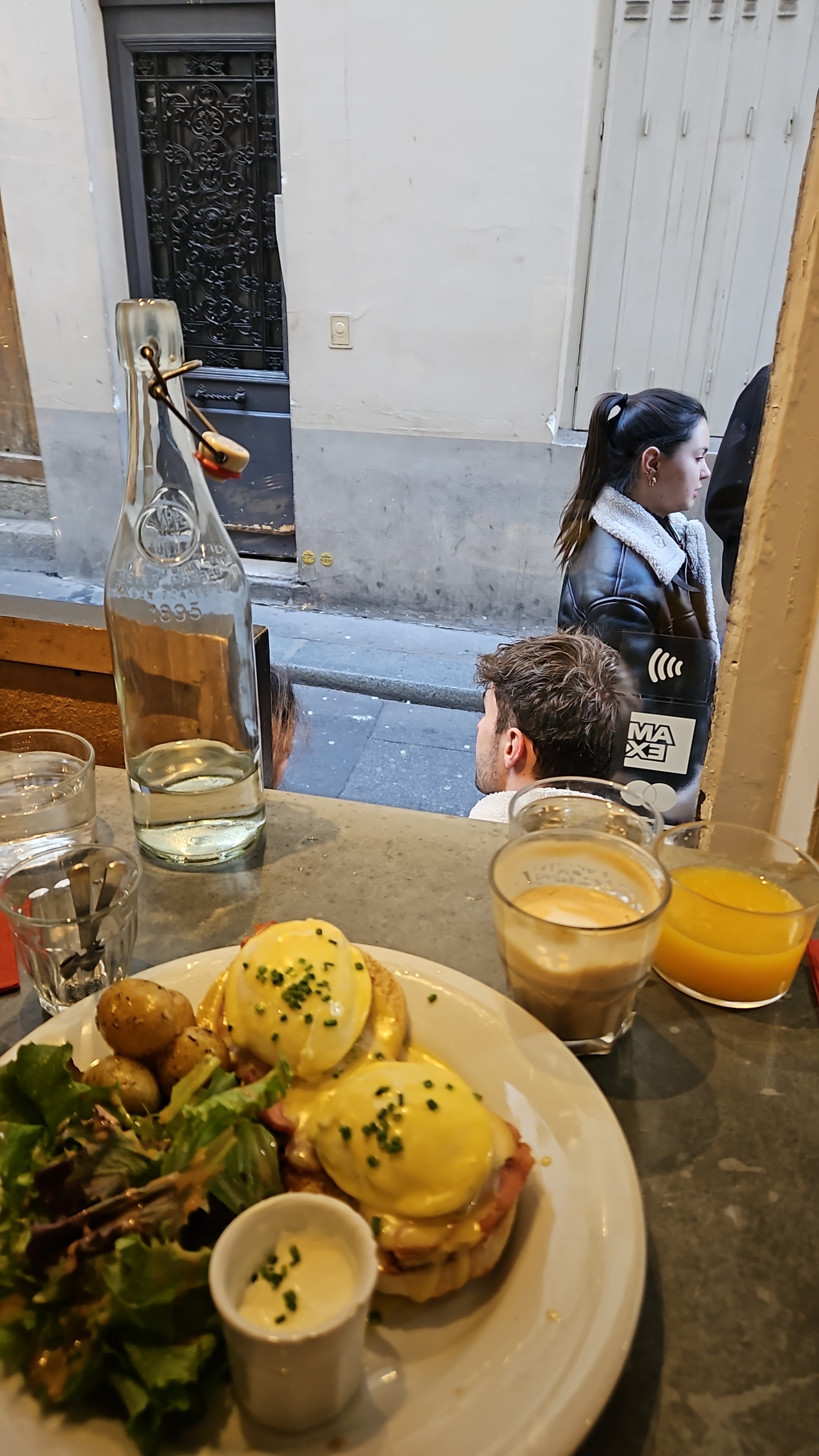Des œufs-xellent! Je ne savais pas que les œufs pouvaient être aussi délicieux qu'un repas complet. Nous avons eu un Benedict et une omelette - les deux étaient délicieusement préparées. Astuce : visitez-le en semaine après 14 h pour éviter la foule. Ils ferment à 17h. Servi par une serveuse géniale avec un goût exquis de la musique des années 90? J'y retournerais certainement la prochaine fois que nous irons à Paris.