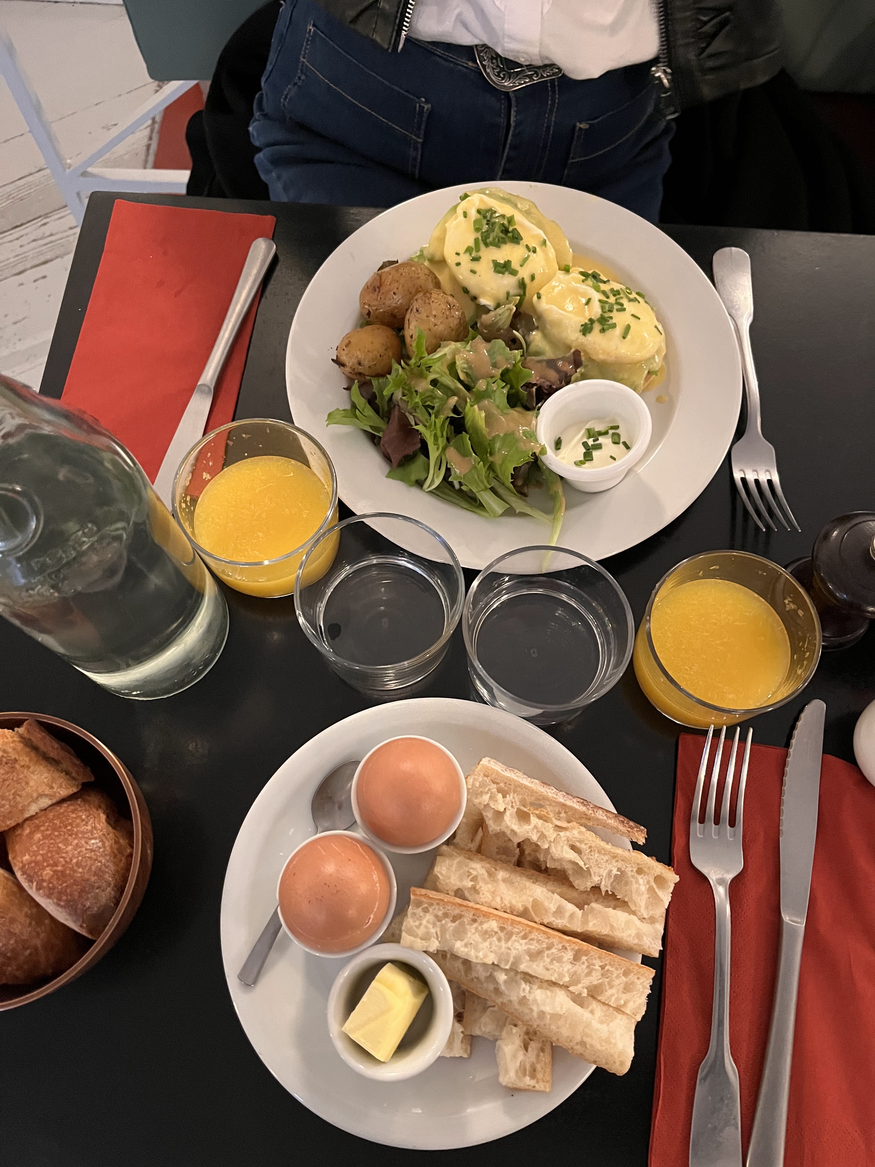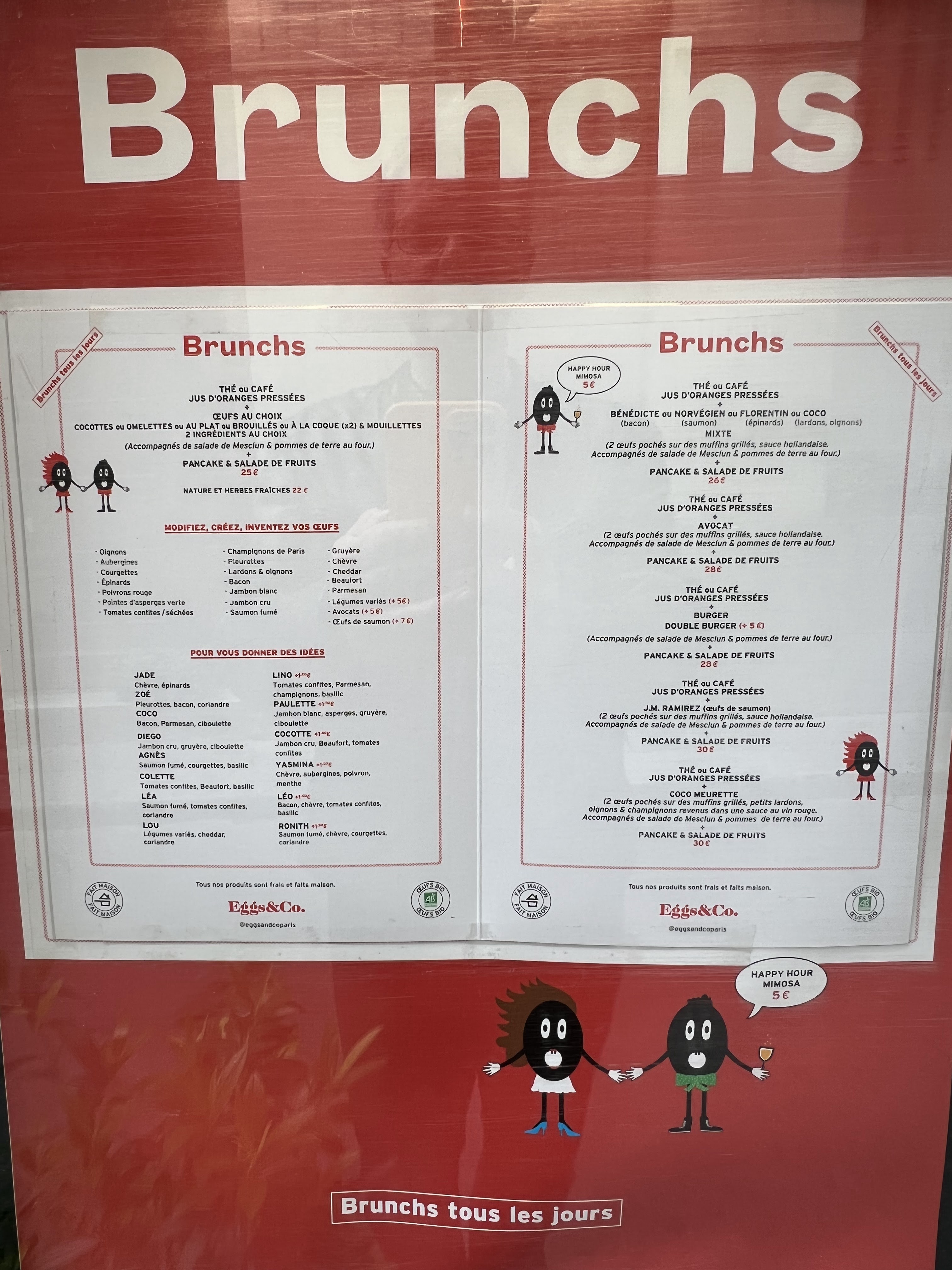 J'étais arrivé à Eggs&Co avec le décalage horaire et je voulais un repas copieux. Le personnel m'a accueilli et m'a assis immédiatement. Ils étaient polis et parlaient français et anglais. J'ai commandé le brunch norvégien et il est arrivé avec un panier de pain frais. C'était délicieux et j'aurai envie de revenir une fois que je reviendrai à Paris !