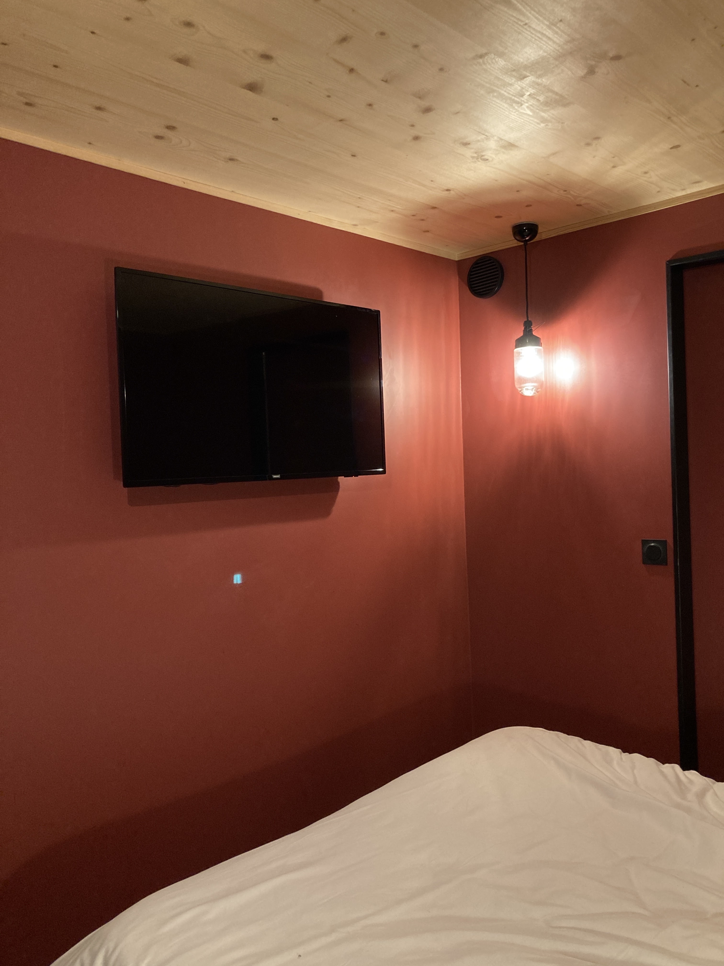 Nous avons séjourner une nuit dans une chambre dortoir. La chambre était un peu petite. Le matelas était large et confortable. Nous avions des prises vers chaque lit. Le petit radiateur électrique que nous pouvons régler par nous même est appréciable surtout après une journée dehors à avoir froid. Le thermostat de l’eau chaud au niveau de la douche fonctionne parfaitement, ce qui est appréciable dans un hôtel. Les chambres ne sont très bien insonorisées. Nous avons entendu les personnes de la chambre au dessus marchaient. Et non pourtant ce n’était pas des éléphants. La décoration est très jolie et originale. Le rapport qualité prix du petit déjeuner est très bien.