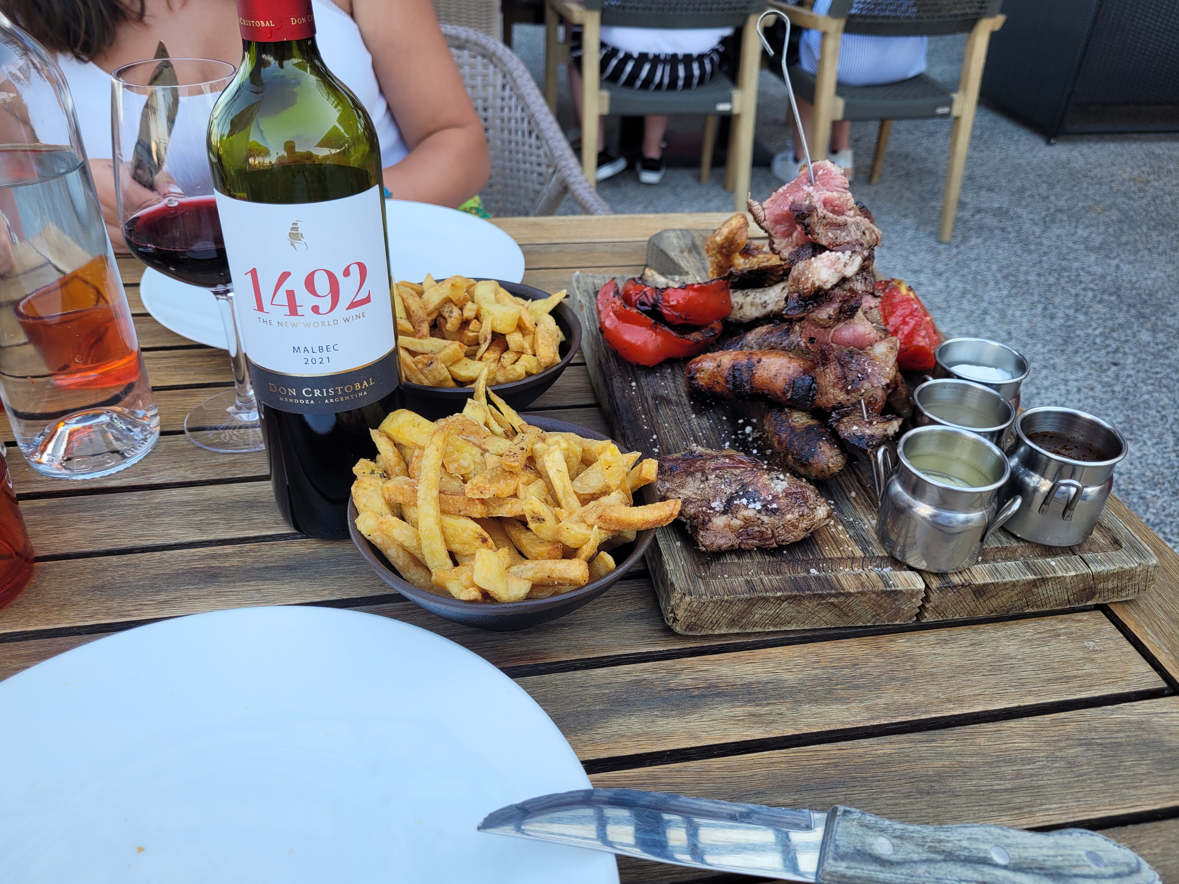 Super resto de viandar, des belles assiettes généreuse, avec une viande de qualité. Le tout sur une vu en face du brasero