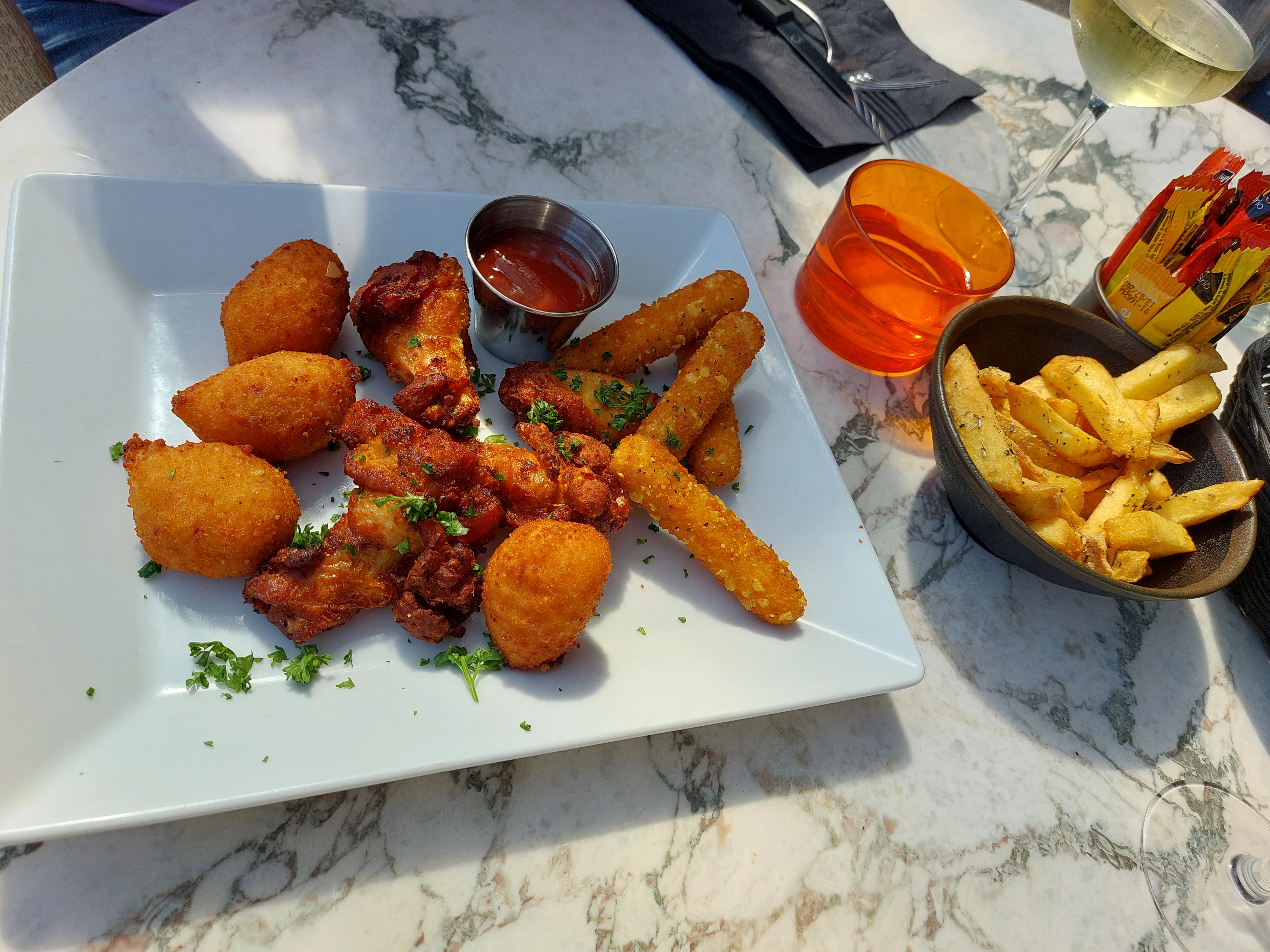 Nous sommes des habitués et quelle déception.. voici la planche tex mex de ce midi..pour 18 euros !! Planche à partager ! Une honte..sans parler des verres de vin a moitié vides pour 5euros 50..les seuls points positifs la gentillesse de la serveuse et les desserts.. vraiment déçue