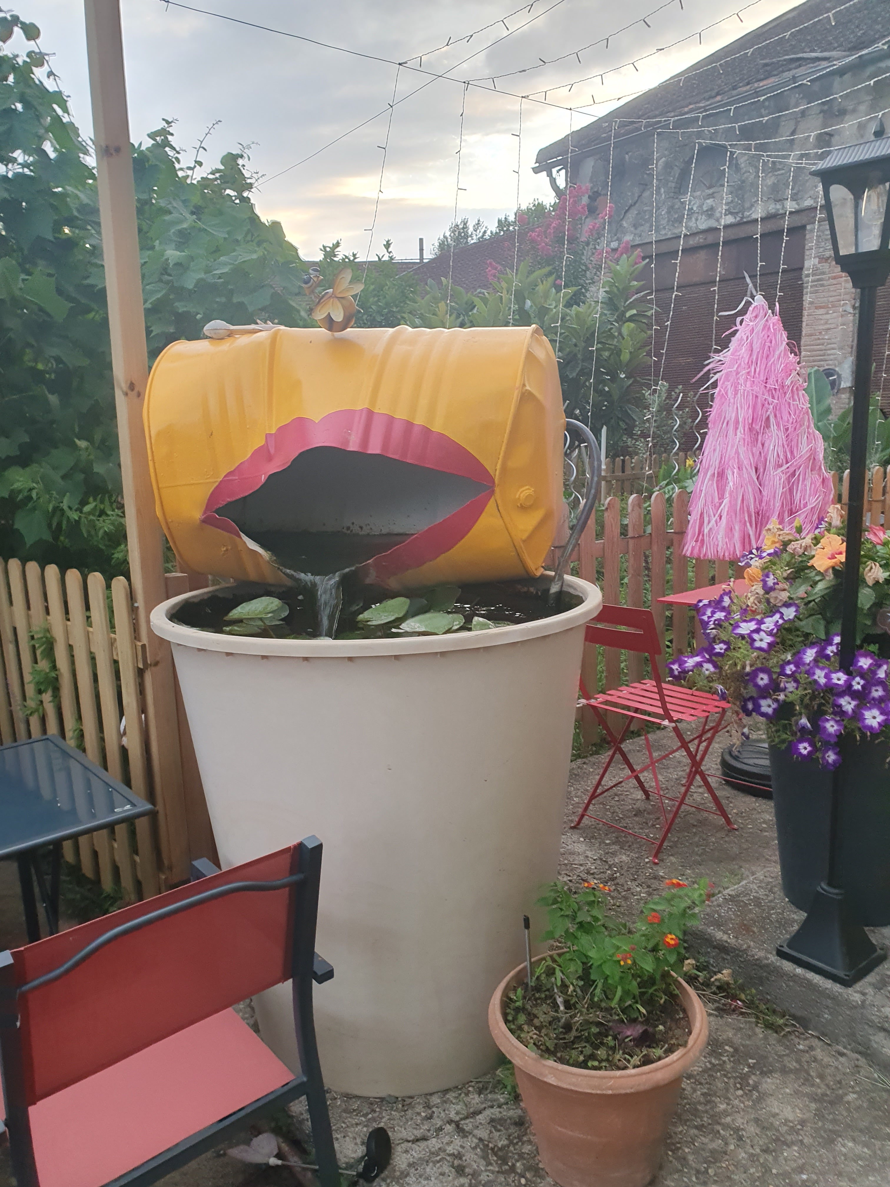 Endroit tres surprenant !entre jardin et et amoureux de d'art, esposition de tableaux, une ambiance chaleureuse et conviviale, la soirée c'est terminé par un spectacle, a ne pas louper