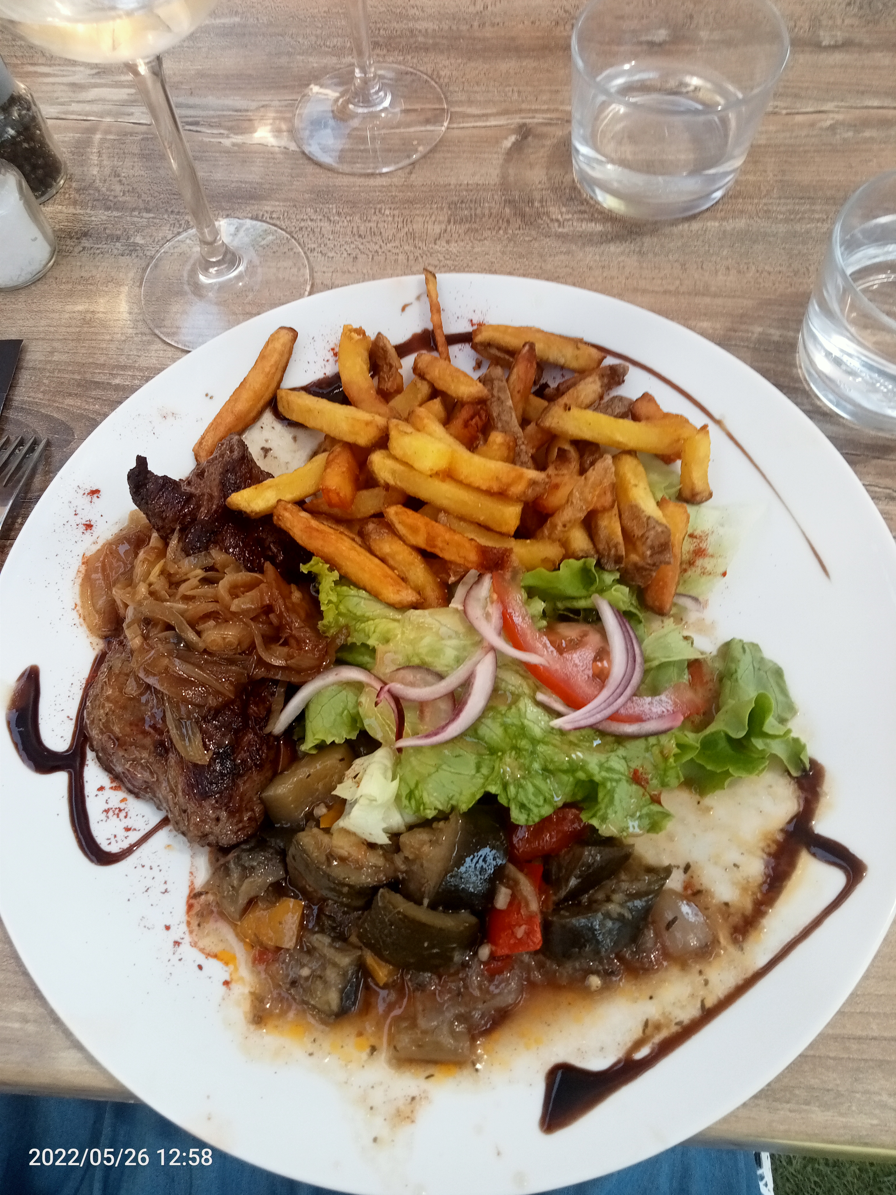 Déçu du repas viande pleine de nerfs légumes froid sauce au poivre immangeable passez votre chemin
