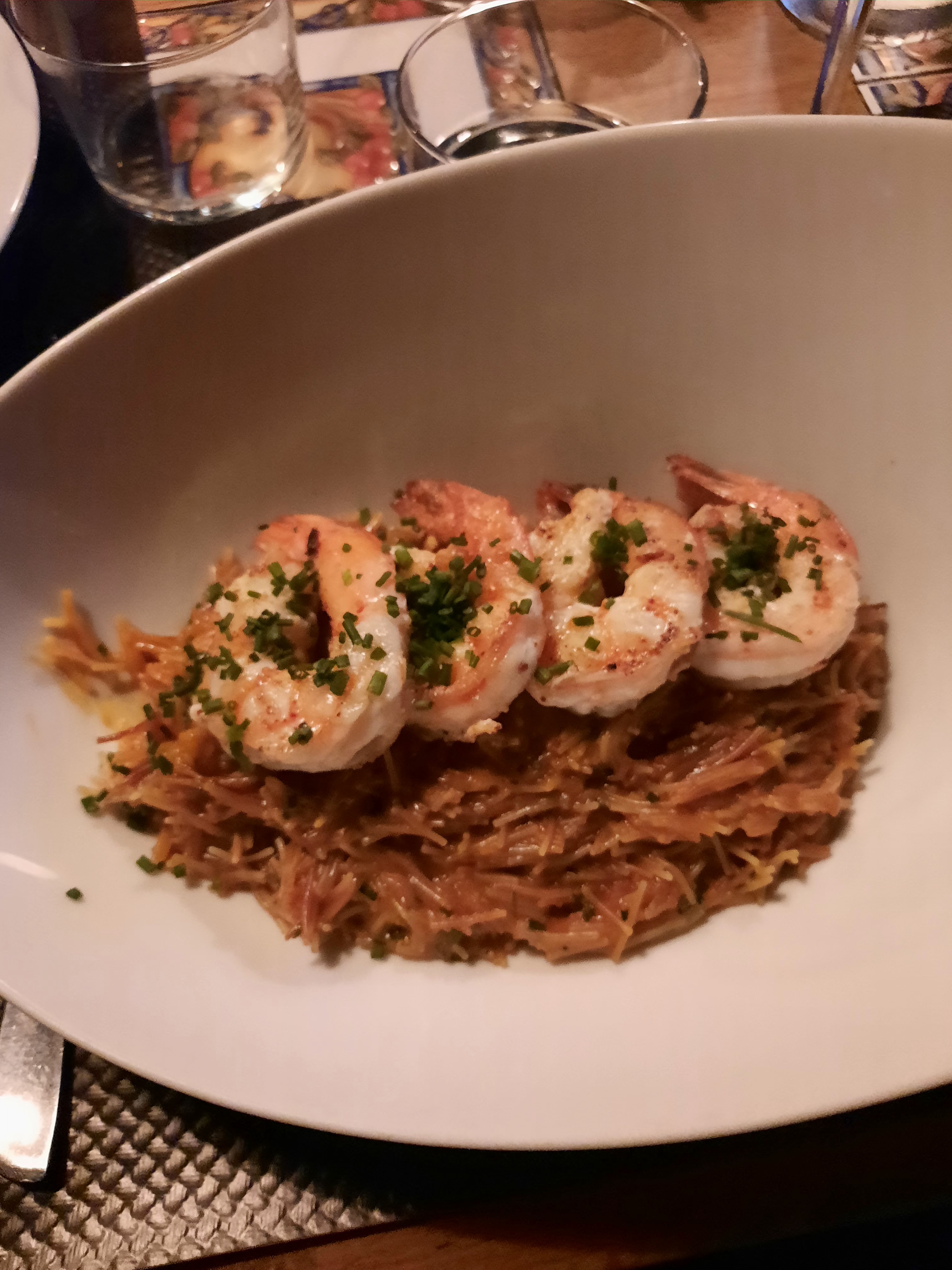Premièrement le plat phare est raté quantité insuffisante gambas trop cuites avec trois poivrons cru : un désastre les autres plats n étaient pas beaucoup mieux mauvaise pomme de terre viande trop cuite comme la saule qui n étaient même pas préparée !!! Seul le désert était acceptable. Je déconseille en plus c est très bruyant