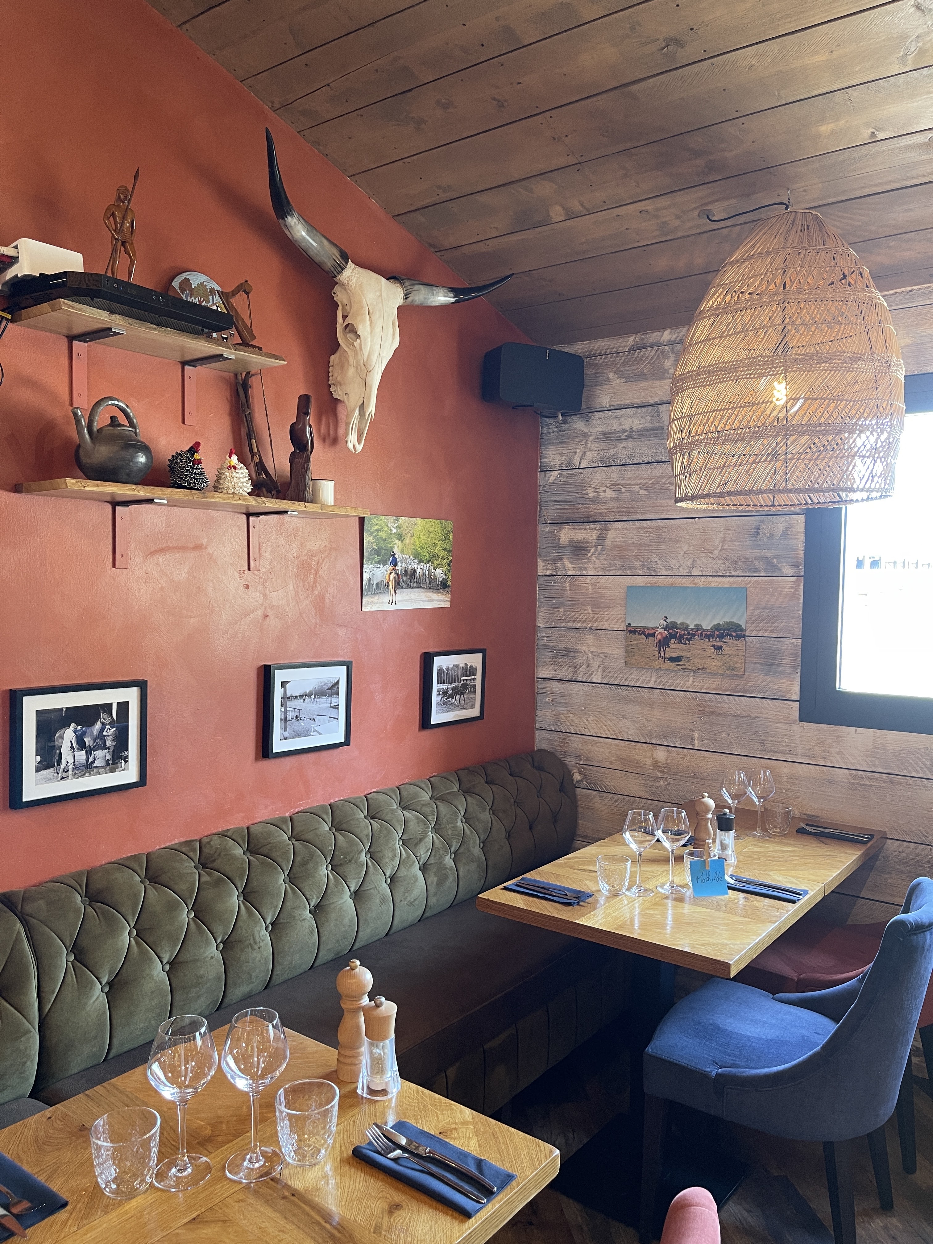 Superbe restaurant aux couleurs sud américaines qui pourrait s'apparenter à un ranch. La cuisine y est de qualité et l'ambiance chaleureuse. Je vous le conseille vivement que ce soit pour y passer boire un verre ou y dîner.
