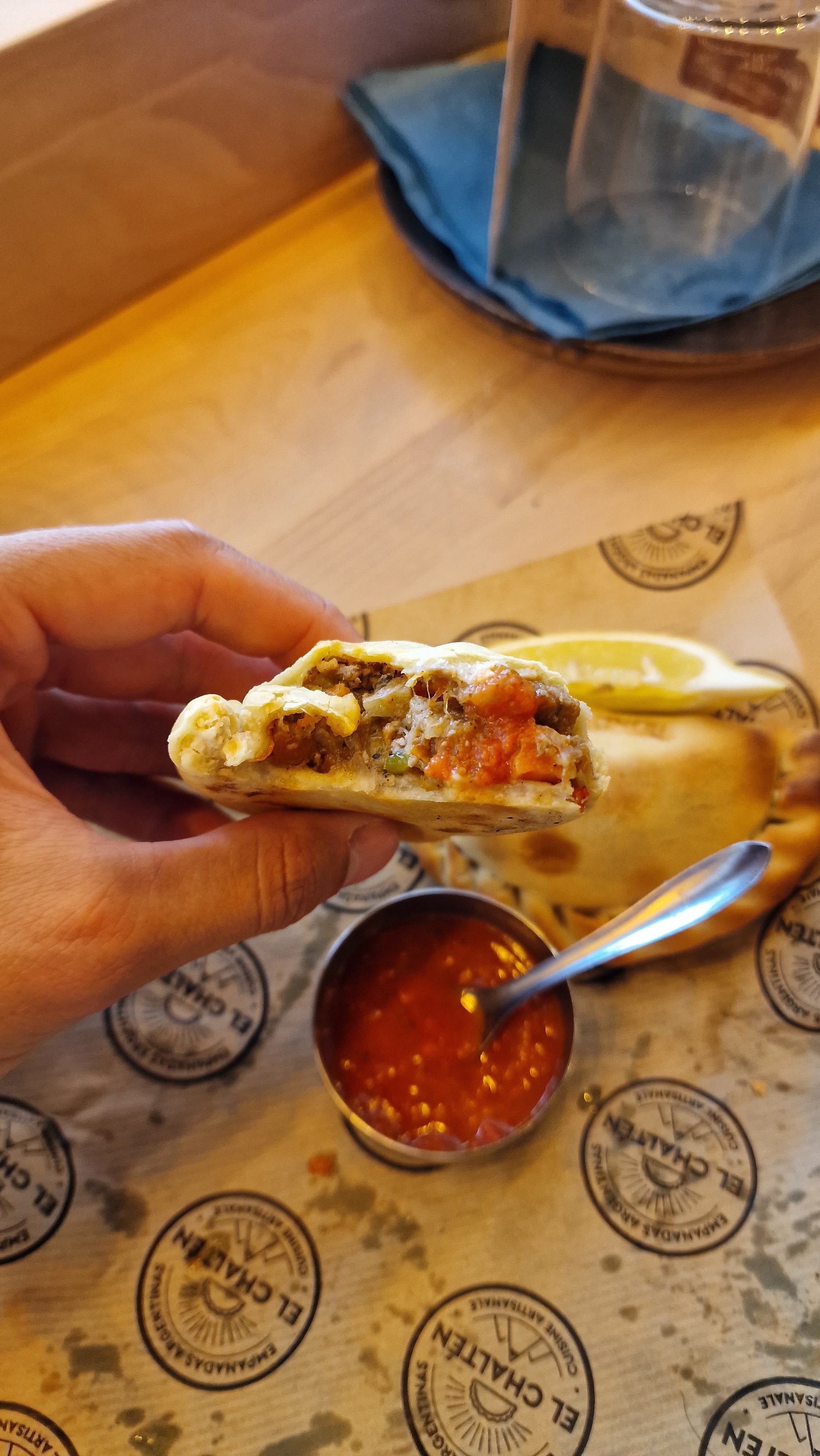 Dégustation d’Empanadas a l’agneau, traditionnelle ainsi qu’au porc à été le meilleur moment de ma journée ! Délicieux et très bien cuisiner, sauce épicé bien gourmande et un service agréable avec le sourire Ont attend que quelques minute avant d’être servi Je recommande !