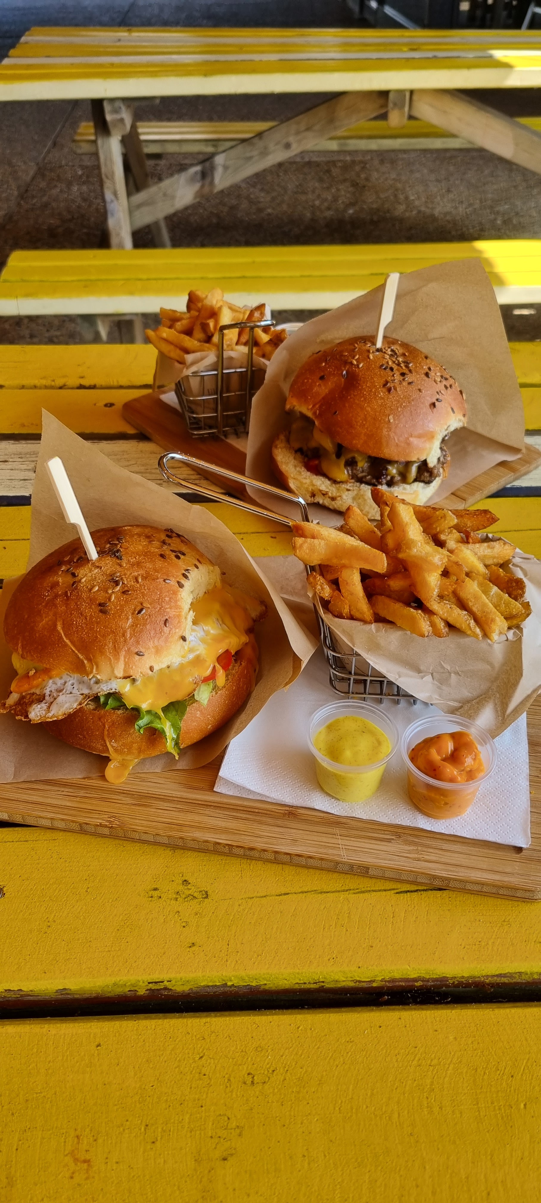 Le seul lieu ouvert un 11 février 2023, par une magnifique journée, des burgers au top, le giant est tout simplement énorme, demandez une assiette pour en profiter pleinement, les tarifs sont dans la moyenne, et le service est rapide , 5 étoiles 🌟 car le seul qui a le courage d'ouvrir sur ce secteur et à cette époque et là je dis Bravo à l'équipe 👍🏻