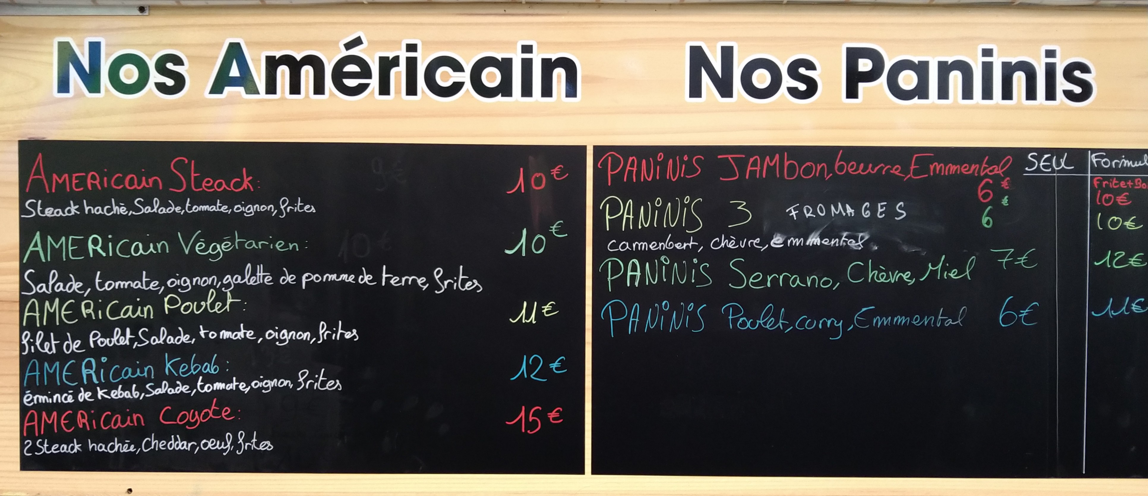 Nous avons pris un américain vraiment excellent et copieux avec frites faites maison, ça vaut largement son prix. Personnel très agréable