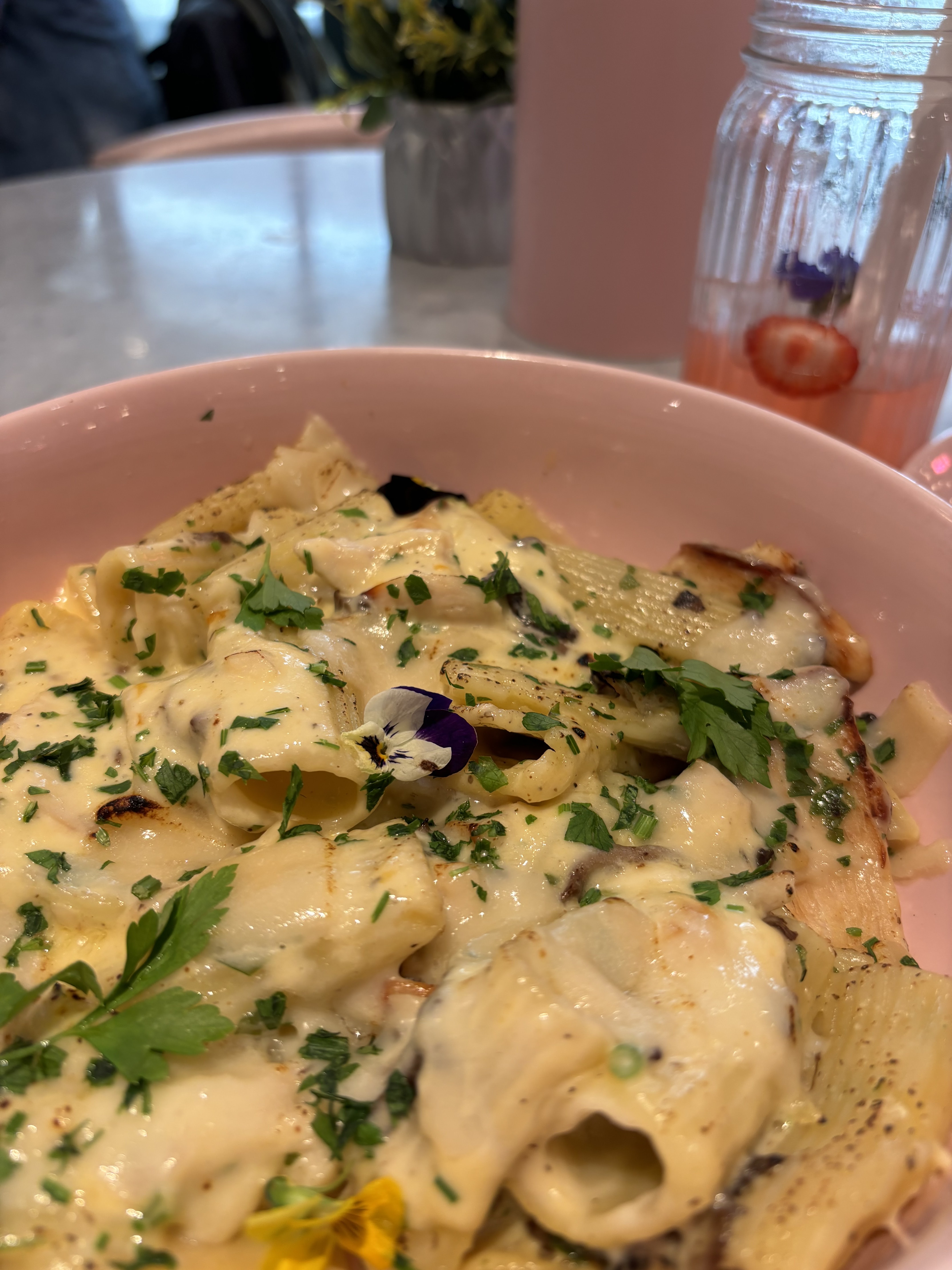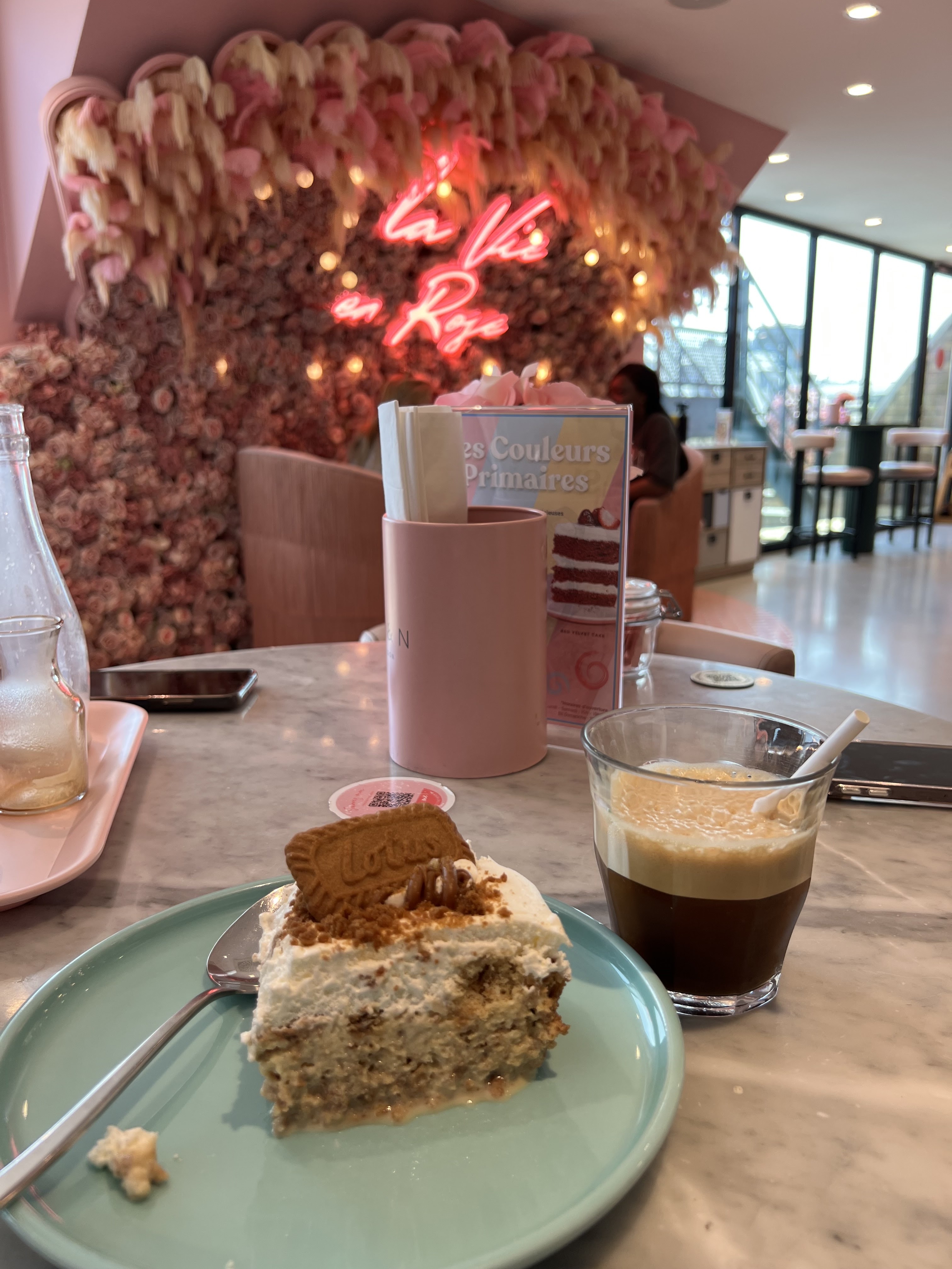 Pti endroit très girly comme j'aime !!! Tout est rose 🥰👌🏾 Par contre prévoyez au moins 1 bonne heure d'attente avant d'obtenir une place plus ou moins acceptable!!! Car certaines tables se trouvent près de la file d'attente... du coup tous les regards se posent sur vous et votre assiette... sentiment pas très agréable pour le coup!!! 🤷🏽♀️ Une fois assis il faut savourer ce moment gustativement et visuellement 👌🏾💯 De la boisson au dessert 😋 le visuel est juste magique et au goût magnifique!!! Je recommande vivement. Par contre entre la boisson le plat et le dessert il faut compter une moyenne de 45€ 😆 Sinon à tester au moins 1 fois pour se faire ses propres impressions 😉