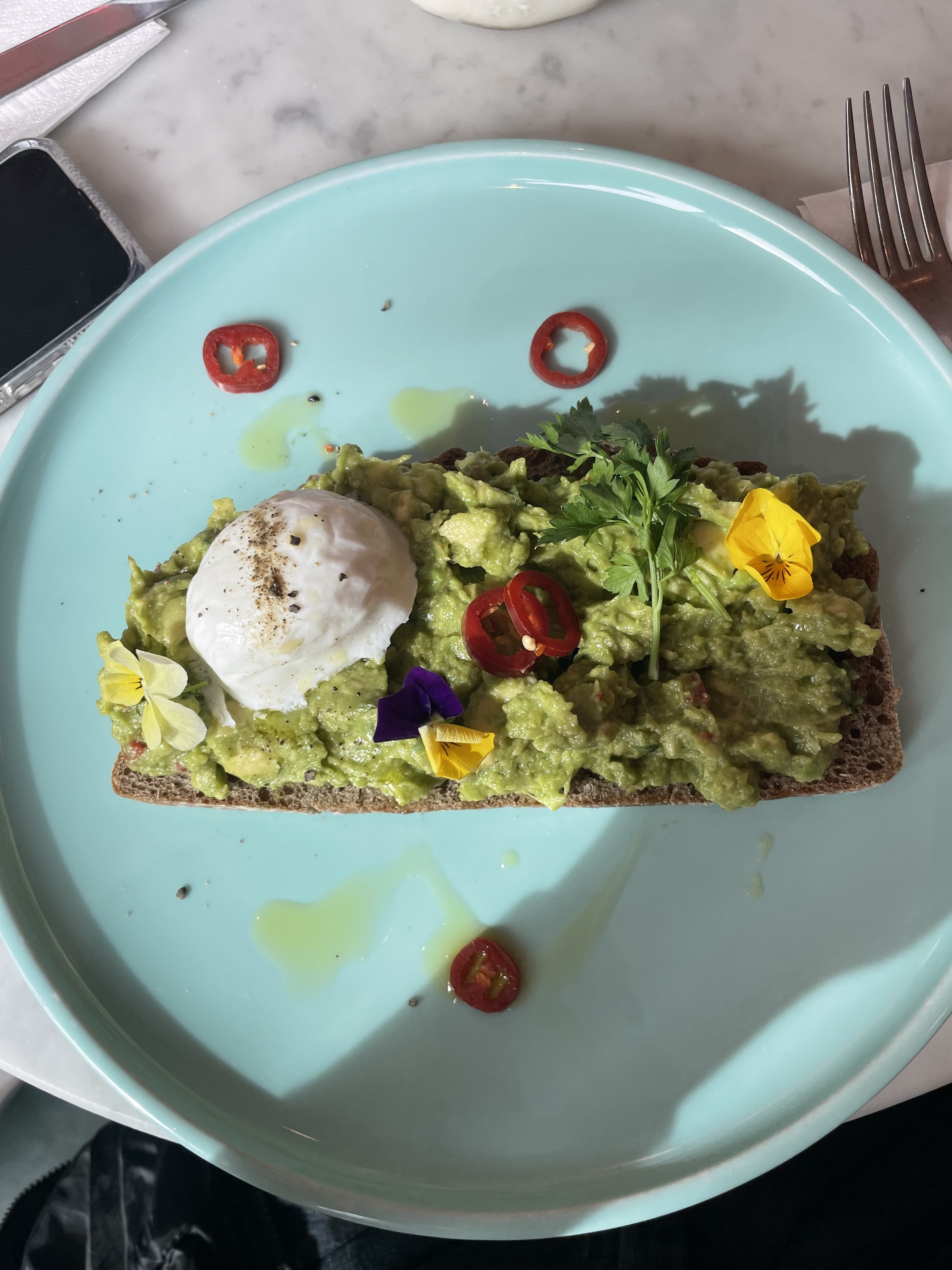 J'ai été attirée par le cadre comme beaucoup. Le staff est adorable. Je suis arrivée à 11h30 et il n'y a que le petit déjeune de disponible. Le dimanche on a le droit a l'avocat toast en choix en plus du choix du petit déj. J'ai donc pris un avocado toast, un chai latte et une tartelette à la fraise car le brunch commence à 12h00. L'avocado toast est cher et est trop citronné. Pour le prix on s'attend à un peu plus de volume qu'une malheureuse tranche de pain au guacamole avec de la coriandre... Le minimum est d'avoir une petite salade de roquettes à côté.... Le chaï latte est bon, j'ai trouvé mieux ailleurs pour moins cher et la tartelette est la fraise c'est la même chose... Je ne reviendrais pas pour les plats mais éventuellement pour un petit goûté avec des cookies et une boisson. Où alors je retesterai la version brunch mais je n'ai pas le courage de faire la queue 😂