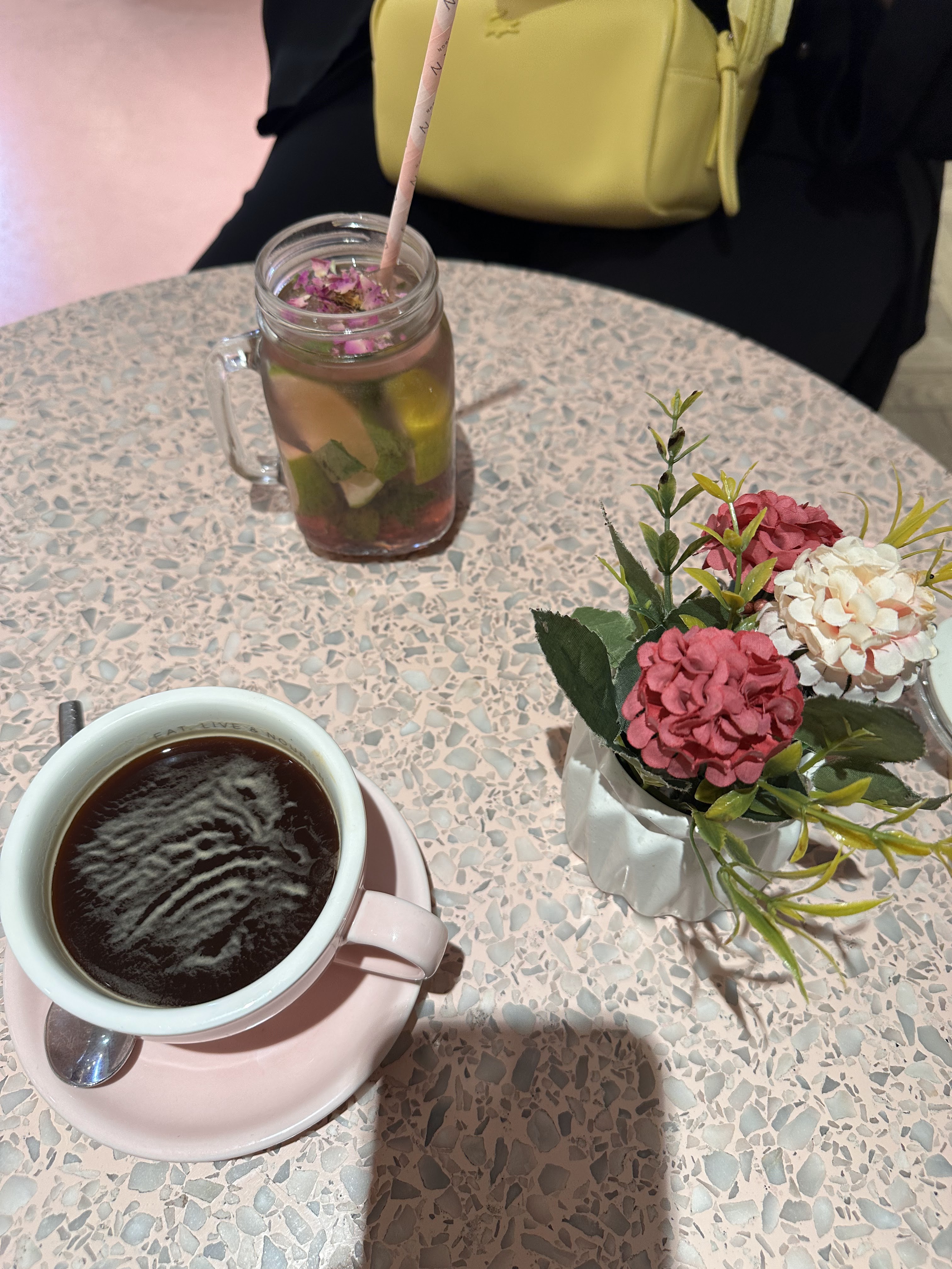 J’ai passé le jours de mon anniversaire un petit moment dans ce café qui est super cute…. Super instagramable mais flemme de me prendre en photo. Je préfère donner mon avis sur le café. Le café est vraiment beau mais le considérant il aurait dû être mieux placé aux galeries. Le personne est adorable. Vraiment. Le service est rapide. Les cocktail superbe mais pour moi qui suis accro au ☕️ c’était vraiment pas ça… les gâteaux sont super bon mais je vous conseille d’en prendre 1 pour 2 car ça écœure vite. Merci 🙏🏻 merci bcp pour le service.