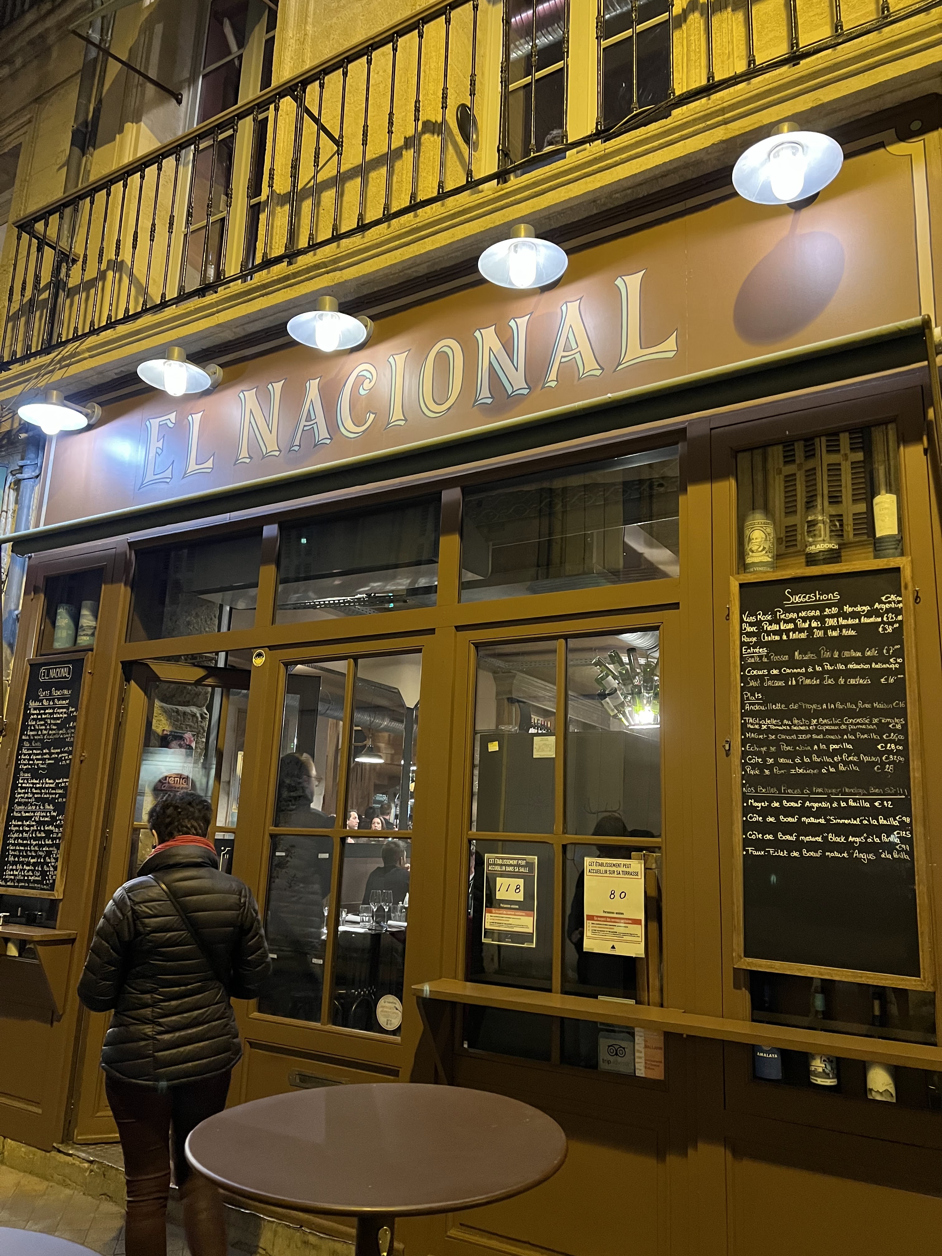 Très bonne expérience pour un dîner en tête à tête à El Nacional. Super service et accueil Belle carte avec bcp de choix. Belle cuisine, savoureuse et précise Excellentes croquettas de bœuf Belles empanadas Viandes savoureuses Tarif elevé mais ça vaut la peine. Un bémol : il fait extrêmement froid à l’étage … obligé de demander de couper clim et ventilo (en février et avec 4 degrés dehors…)