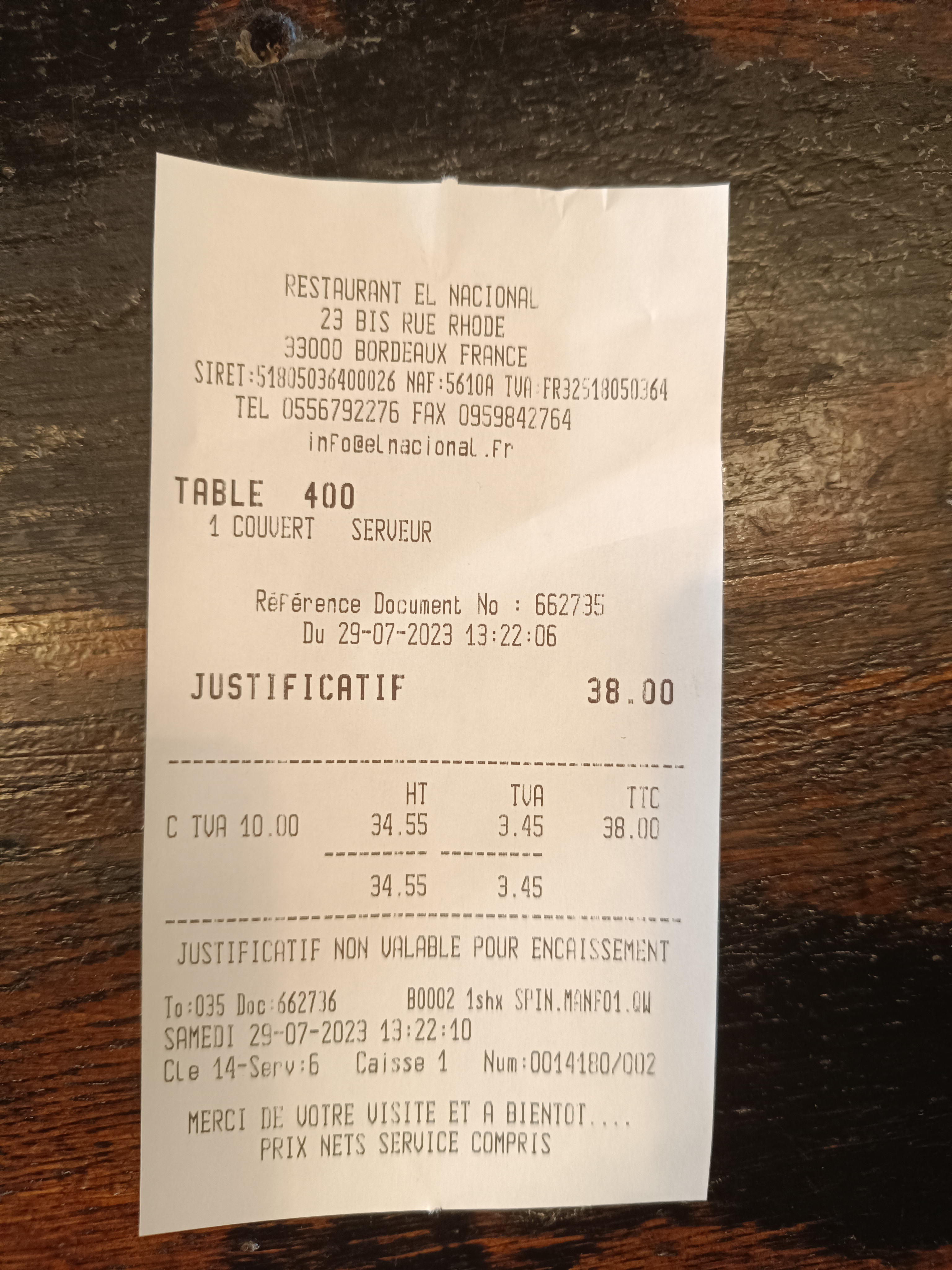 Je ne suis pas du genre a laisser des avis mais après tellement de mauvaise expériences dans des restaurants, je me suis promis d'en laisser un quand je trouverai un restaurant que me plaise. 5 étoiles bien mérités. C'était vraiment bon. Quand on passe dehors on peut avoir des doutes, (les plats plus chers affichés sur le panneau a l'entrée, il faut entrer et voir la carte pour comprendre que finalement y a des bons plats a des prix raisonnables) et aussi pour le côté touristique du coin, ce qui n'est toujours pas une garantie de bonne bouffe. Service, entrée, salade, viande (bien tendre) et dessert fait maison, on a tout aimé, le goût est là. Vraiment BON. La quantité est plus que raisonnable aussi. Je ne suis pas souvent satisfait dans un restaurant, mais là je suis sorti avec le sourire. Merci El Nacional !